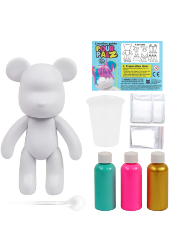 Meet Pour Palz Fluid Paint Bears: your playful companions in creativity! These adorable, blank canvas bear figures are designed for a fun and immersive painting experience. Each bear is made from high-quality, non-toxic materials, ensuring safe and vibrant exploration for artists of all ages. With a unique fluid painting technique, Pour Palz encourages you to unleash your imagination as you mix colours and create stunning masterpieces. Simply pour the paint into the bear, tilt and watch as the colours flow and blend into mesmerising patterns. Perfect for both solo projects and group activities, these charming bears make art accessible and entertaining. Whether you're a seasoned artist or a curious beginner, Pour Palz Fluid Paint Bears are here to inspire your creativity and bring joy to every canvas!