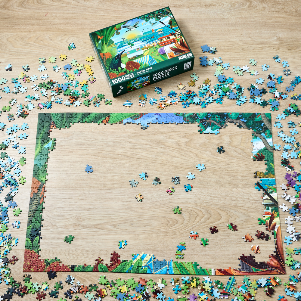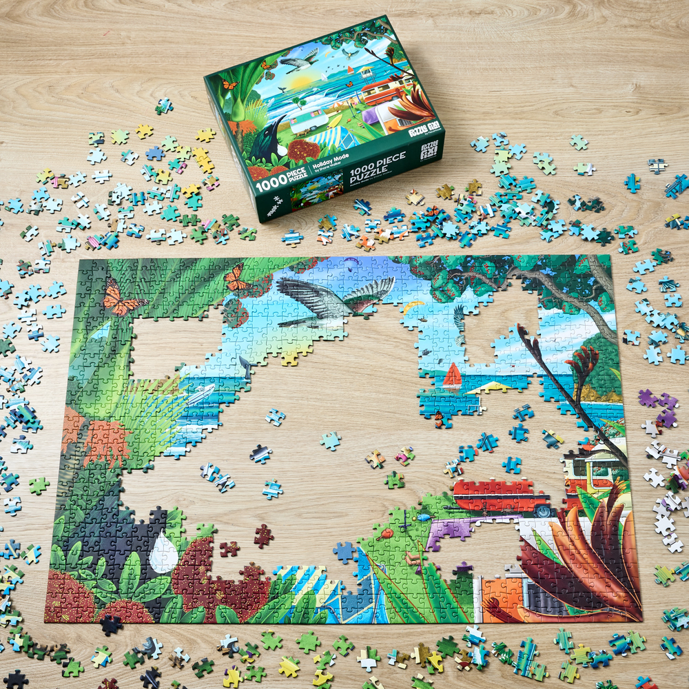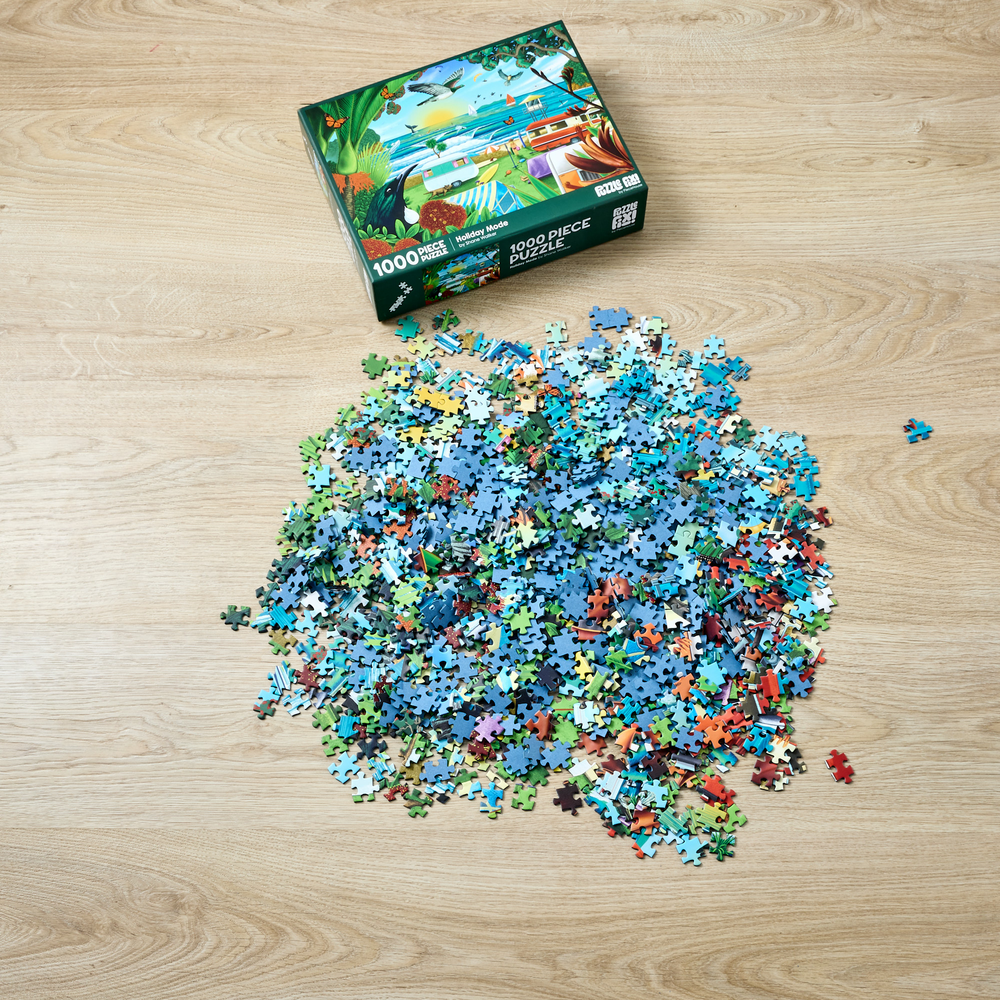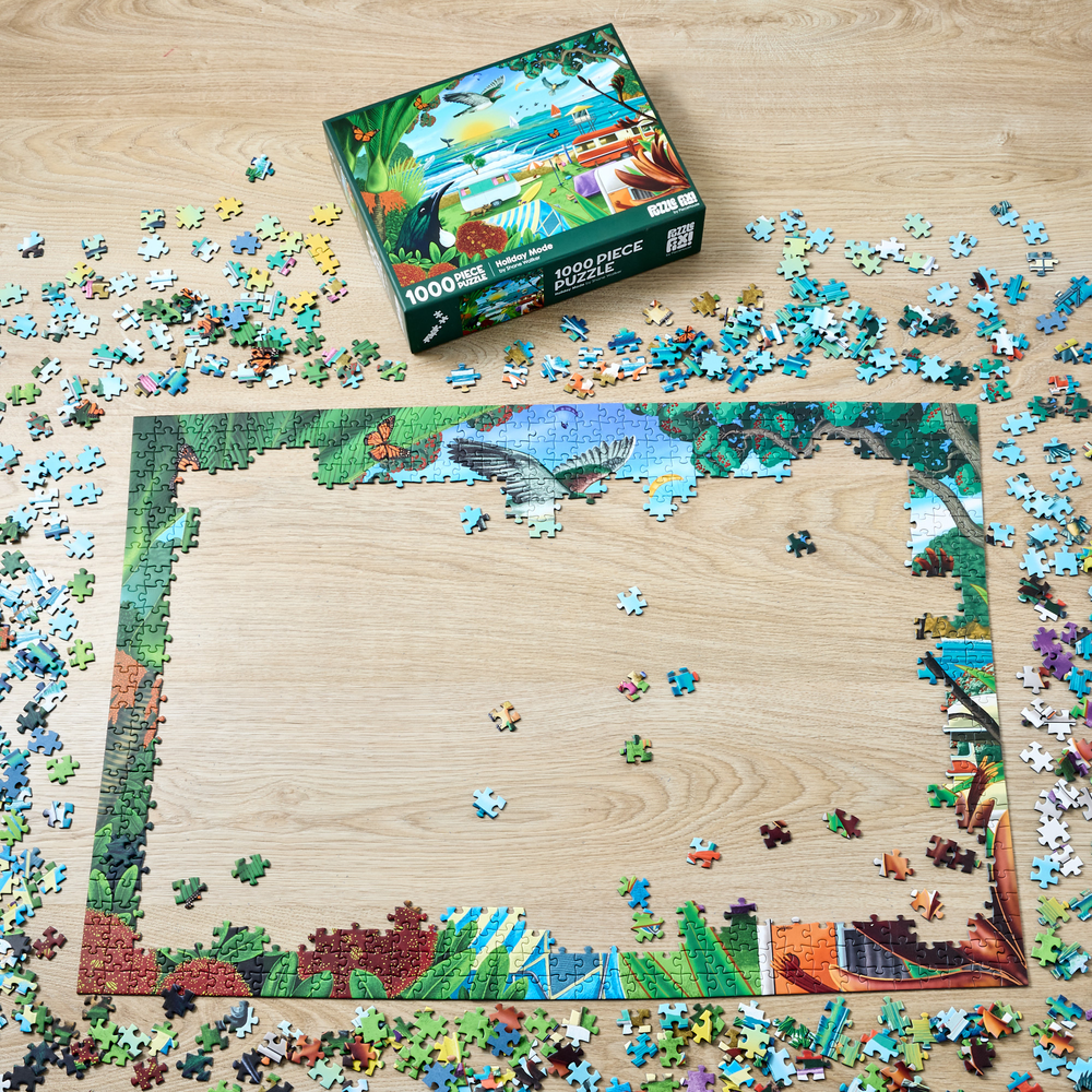 Piece together a wonderful image of a New Zealand beach holiday from artist Shane Walker. Featuring 1000 pieces, when completed you will have a stunning image depicting native flora, fauna, and wonderful scenery. Finished puzzle measures: 75cm x 52cm