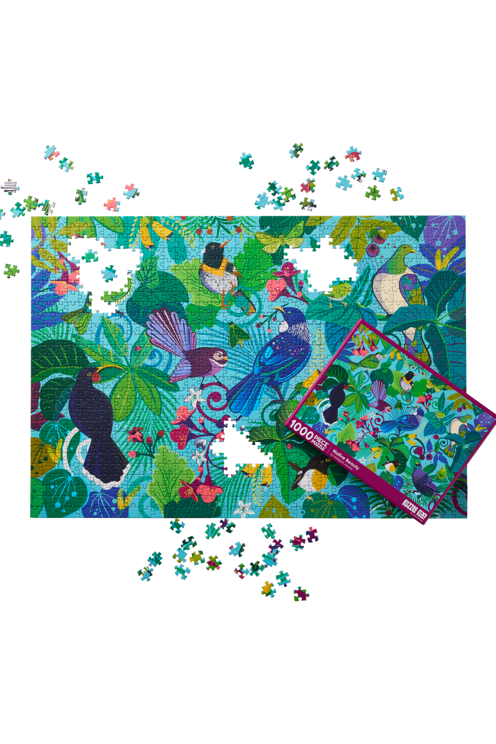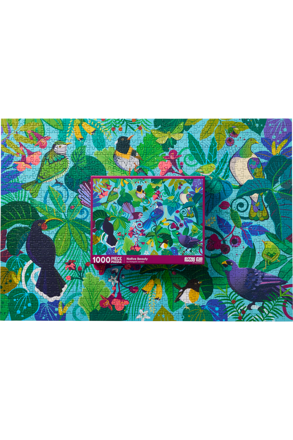 Piece together a wonderful image from artist Marigold Janezic. Featuring 1000 pieces, when completed you will have a stunning image depicting native flora, fauna, and wonderful scenery. Finished puzzle measures: 75cm x 52cm