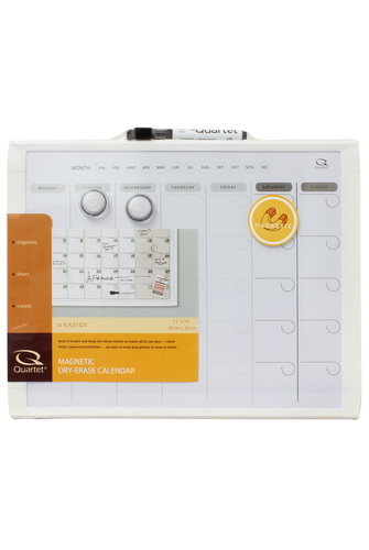 Keep it simple and keep the whole family on track, with this magnetic Qaurtet Whiteboard Calendar. Track dates, times and schedules for the current month, and when a new month starts simply wipe everything away and start again. Includes self-stick pads and magnets as well as an erasable marker pen.
