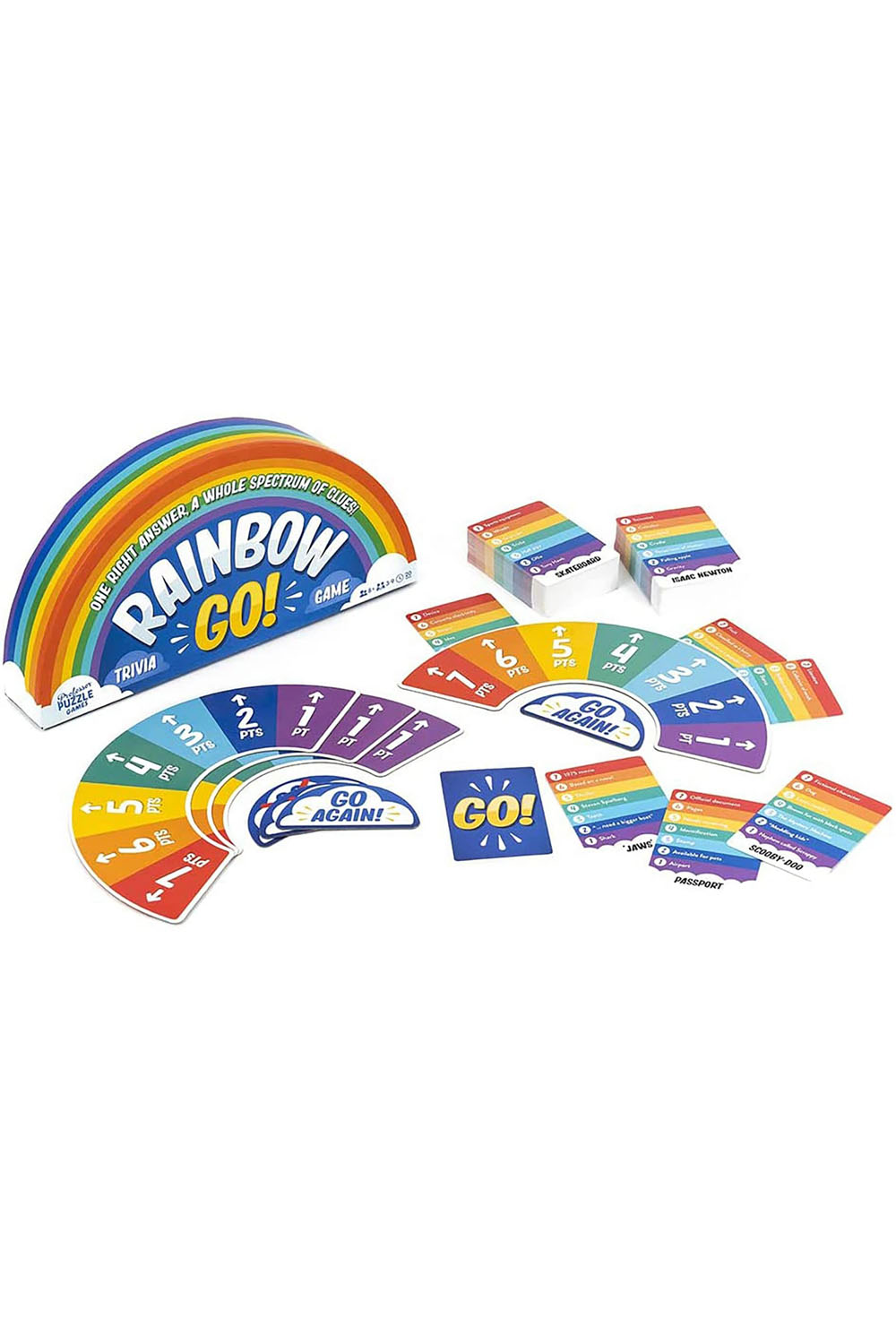 One right answer, a whole spectrum of clues! Each question has seven clues but only one right answer. The clues get easier, but the less you use, the more points you win! Any player can answer every question, so it's a race to react and slap the "Go!" card first. How will you play? Go! for a high score, guess early, and risk crashing out of the round? Or Go! steady, use more clues, and cunningly capture points? It's time to show your true colours! Ready? Steady? Rainbow GO!