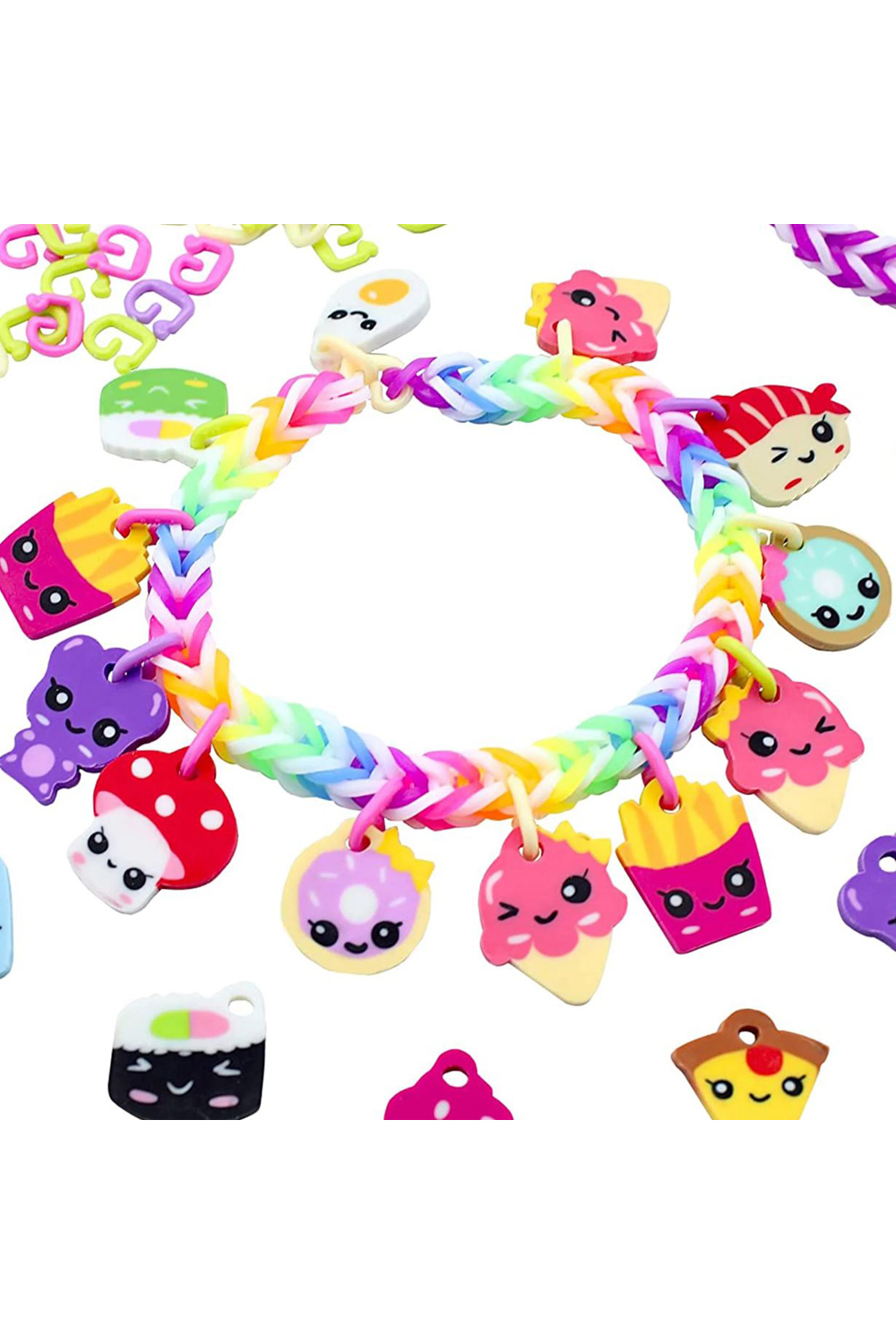 - Contents: 600 Colourful Rubber Bands, 30 Adorable Food Themed Charms, and 50 G-Clips.