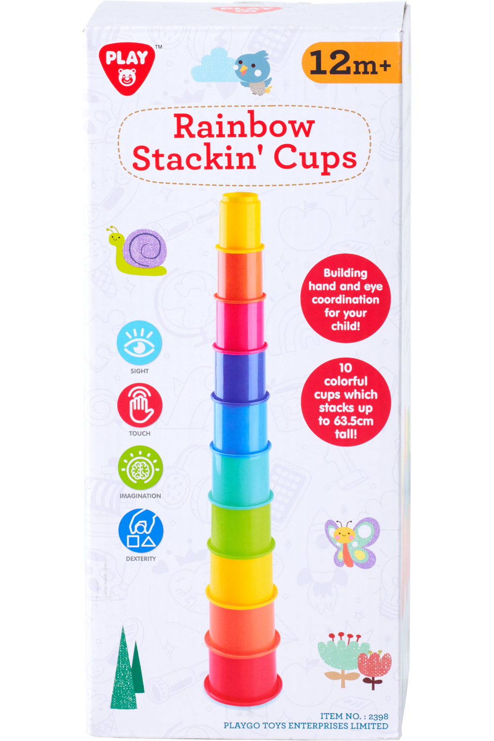 Stack, nest, or knock it down! Learn about colours and animals! Your little one will have fun stacking or nesting these colourful cups while they build hand and eye coordination. The 10 colourful cups stack up to 63.5cm tall!
