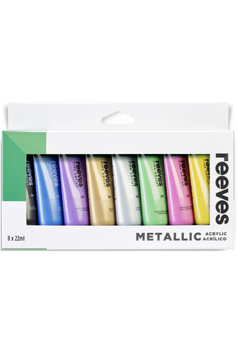 This set of 8 Reeves Acrylic Paints is extremely versatile and comes in a range of beautifully vibrant metallic colours. They are highly pigmented, flexible when dry and can be easily cleaned up with water. Reeves Acrylics can be used straight from the tube to create impasto effects and build volume, or can be diluted with water to use for watercolour techniques. This quality range of acrylics paints has excellent light fastness and is suitable for a variety of surfaces including canvas, paper, wood, fabric and glass. This set is perfect for a student, amateur artist or accomplished painters requiring large quantities of paint for large scale canvases.