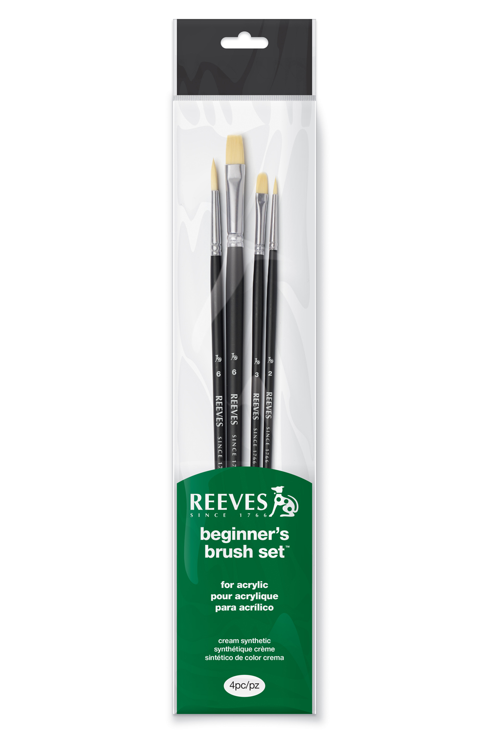 Reeves Beginner's Acrylic Paintbrush Set Long Pack of 4