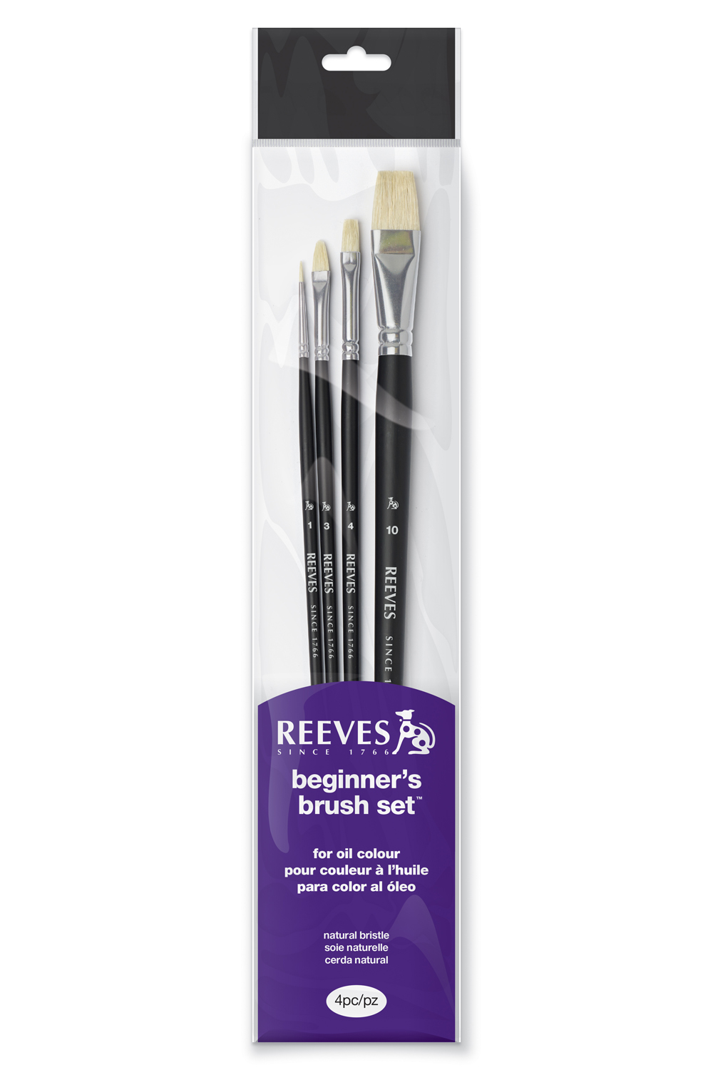 Reeves Beginner's Oil Paintbrush Set Long Pack of 4