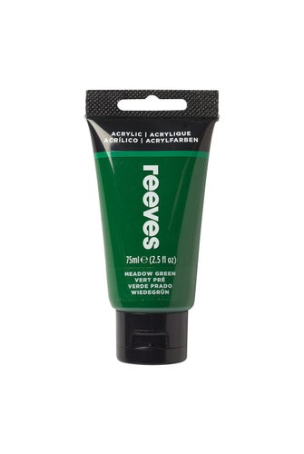 A 75mL tube of Reeves acrylic paint in meadow green. Brighten up your world with pigment-rich, water-based colour that's more than a match for virtually any surface.