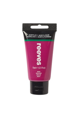 A 75mL tube of Reeves acrylic paint in rose red. Brighten up your world with pigment-rich, water-based colour that's more than a match for virtually any surface.