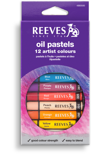 A pack of 12 Reeves Small Oil Pastels offer you bright and vibrant colours. These pastels are suitable for use in classrooms or at home, and can be used on paper, card and canvas. They can also be used dry for drawing and sketching, or mixed with turpentine and blended with a brush. Large oil pastels allow curious creatives to push the boundaries of colour by letting loose and layering up on paper, card, canvas, or board, with dynamic colours.- Not suitable for children under 3 years