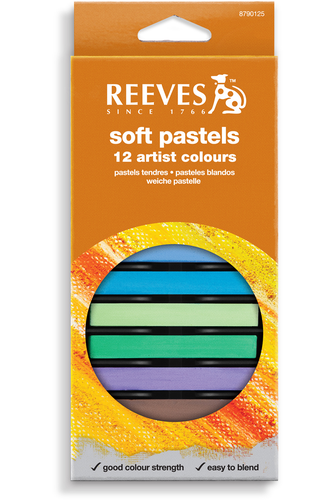 A pack of 12 high quality soft pastels from Reeves. These Reeves pastels use high-quality pigments, colours are strong and vibrant with fade resistance. Extremely soft and easy to apply, they are perfect for colour blending and are suitable for use on textured paper or card. Sharpen your creative edge with square pastels that are fabulous whichever way you look at them. Use the sides for broad strokes, ends for bold lines or corners for details.- Not suitable for children under 3 years