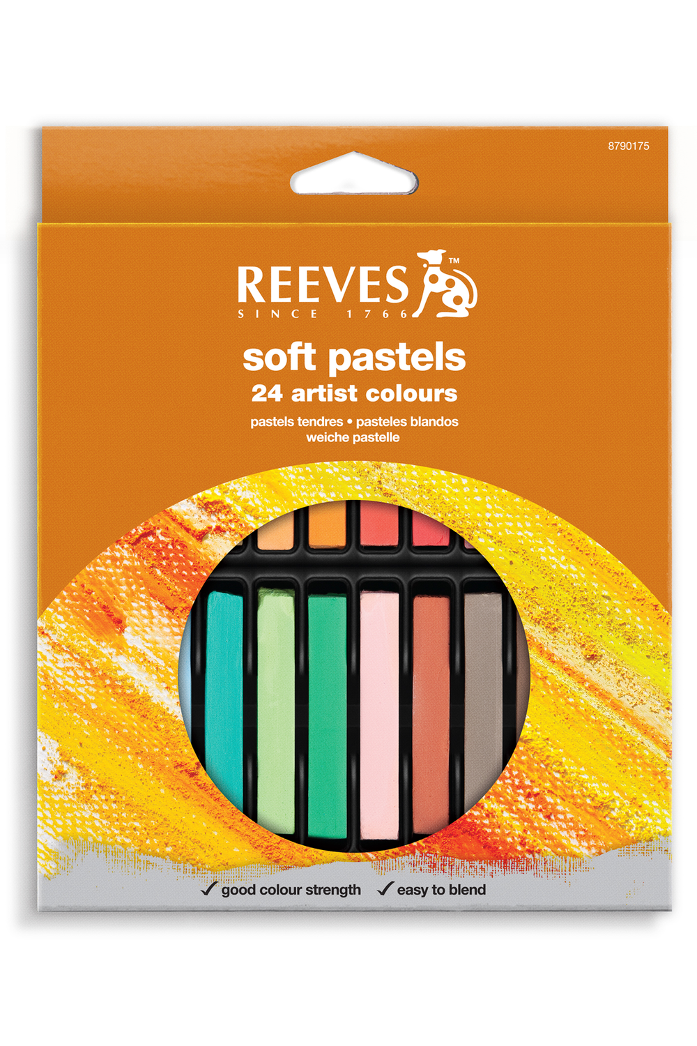 A pack of 24 high quality soft pastels from Reeves. These Reeves pastels use high-quality pigments, colours are strong and vibrant with fade resistance. Extremely soft and easy to apply, they are perfect for colour blending and are suitable for use on textured paper or card. Sharpen your creative edge with square pastels that are fabulous whichever way you look at them. Use the sides for broad strokes, ends for bold lines or corners for details.