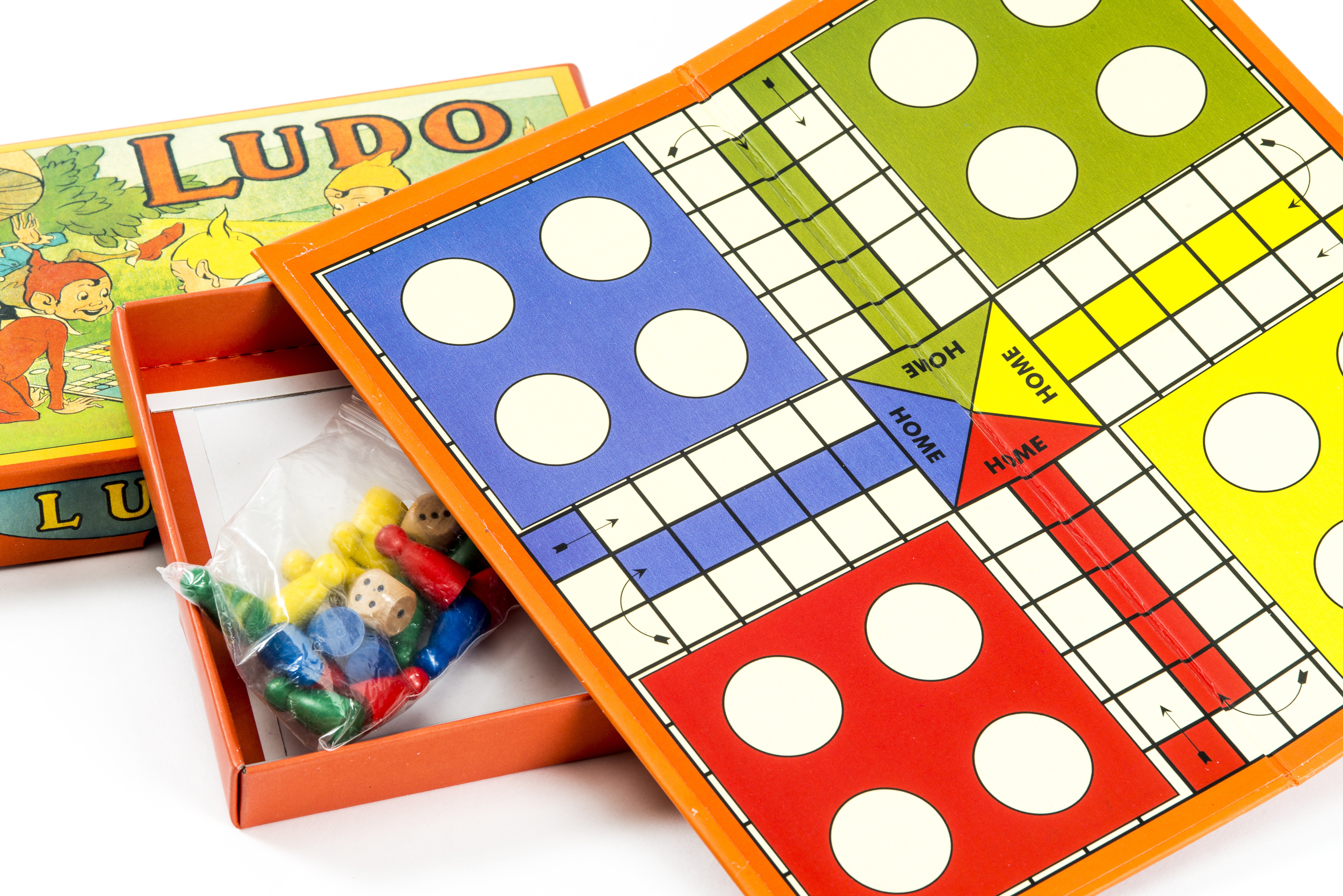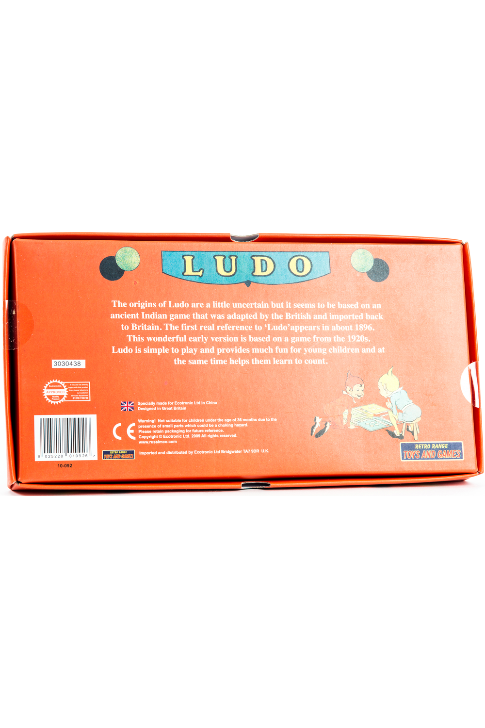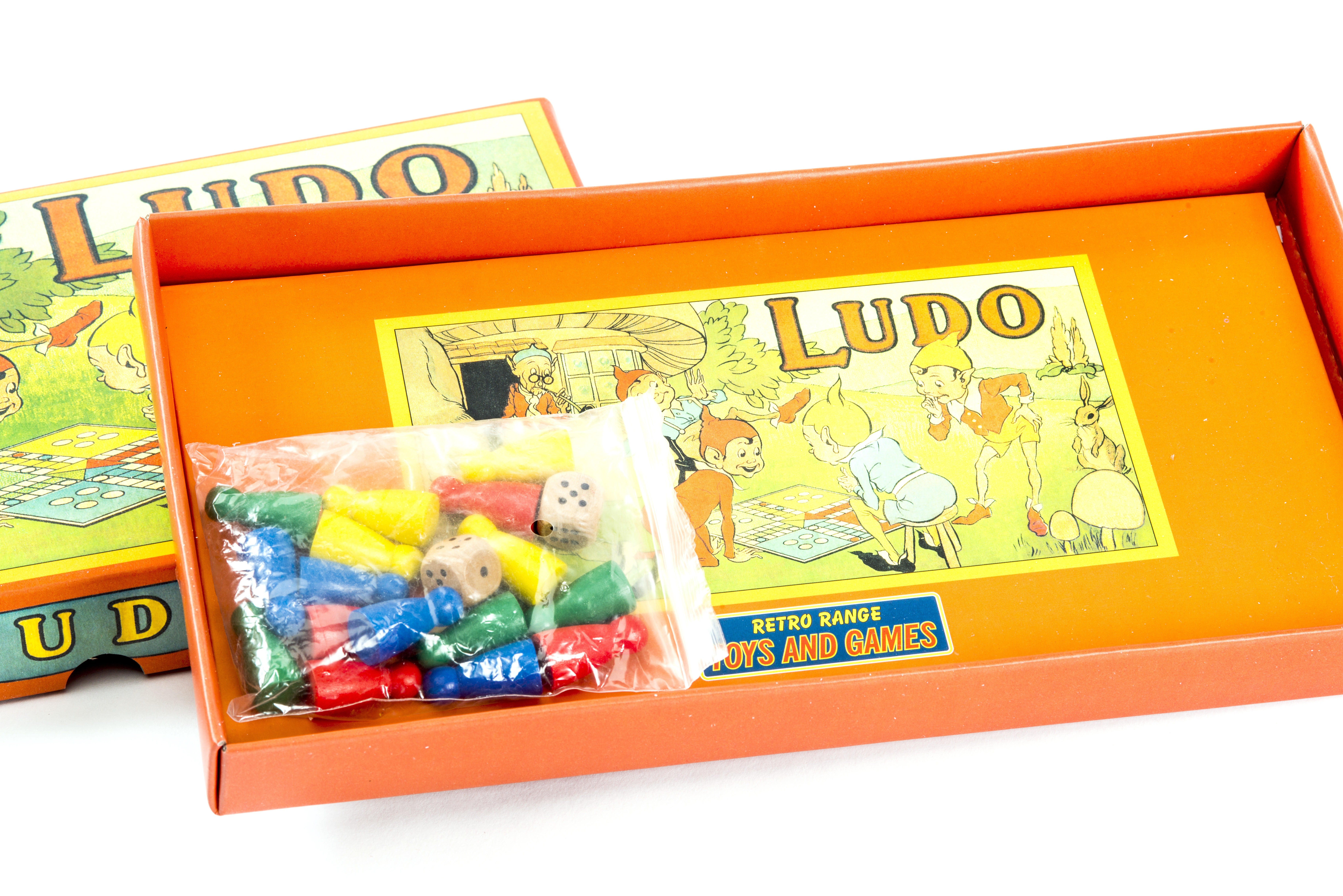 Retro Range Toys and Games Ludo is traditional board game presented in a 1920's style. The origins of Ludo are a little uncertain but it seems to be based on an ancient Indian game that was adapted by the British and imported back to Britain. The first real reference to 'Ludo' appears in about 1896. Ludo is simple to play and provides much fun for young children and at the same time helps them learn to count. A family game for up to four players.