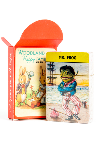 Retro Range Toys and Games Woodland Happy Families is a traditional card game presented in a 1950's style. 11 Woodland families illustrated in the style of Racy Helps will make you feel nostalgic . Happy Families is an old favourite, especially suitable for younger children. This version is adorably illustrated with old fashioned depictions of woodland animals.