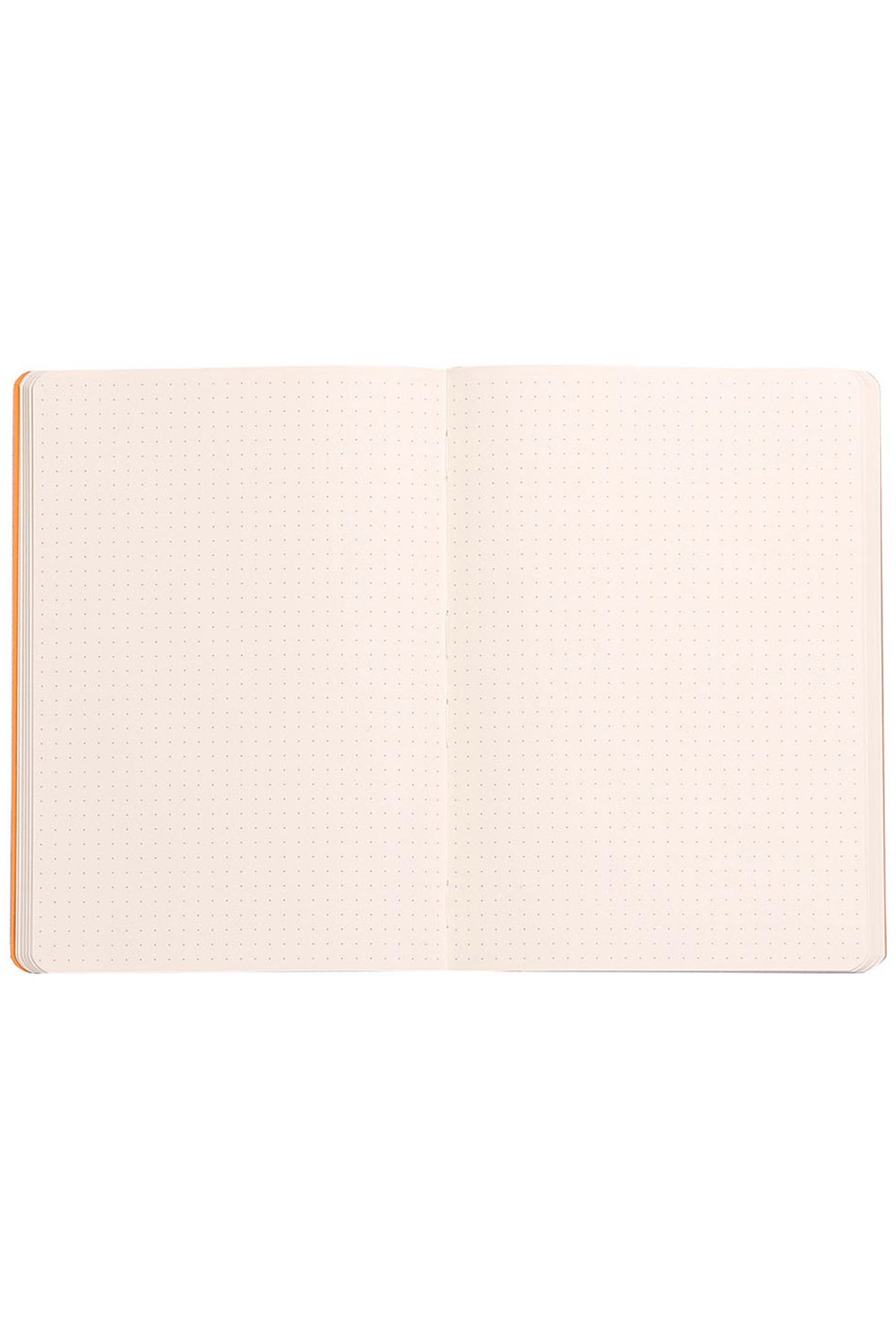 This fantastic notebook comes in a range of colours and is quite possibly the perfect journal. The cover is finished in a smooth, soft finish Italian leatherette, embossed with the Rhodia logo, with a bright orange elastic closure. The inside covers are orange and there is a handy little pocket on the inside back cover for keeping cards and scrap notes. The ivory paper is Clairefontaine's 90gsm bleed-proof, so you can be assured of using both sides of every sheet. The lovely smooth paper is a pleasure to write on with a fountain pen. PEFC-certified from sustainable forestry. Made in France by Clairefontaine. Ivory coloured paper.