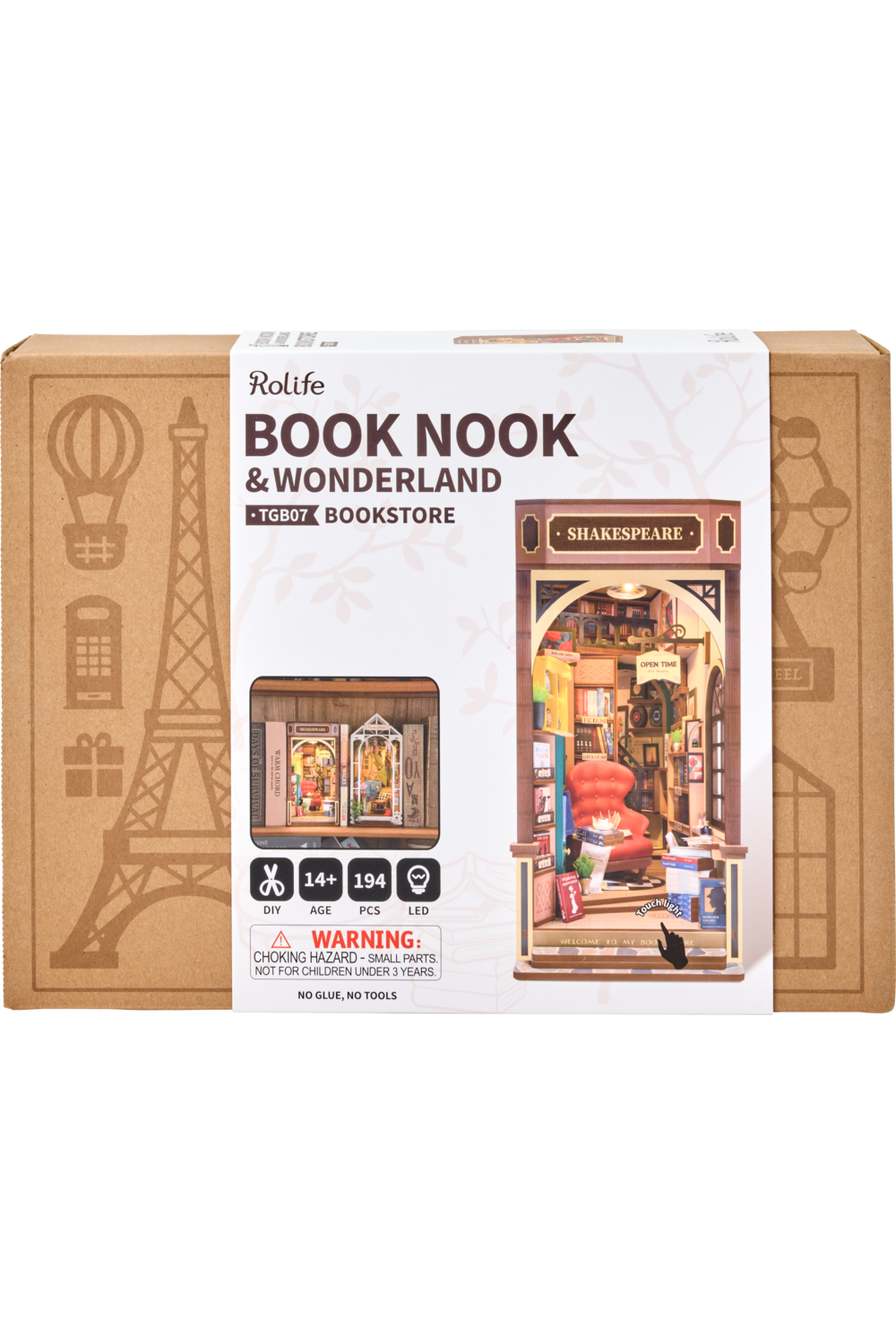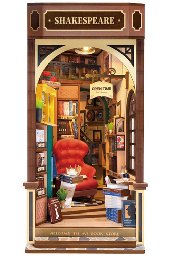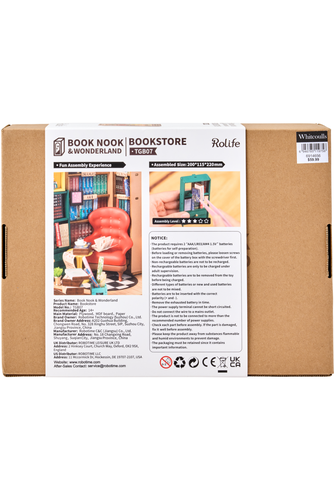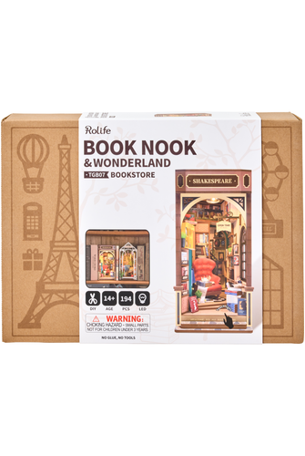 Assemble the Rolife Bookstore Book Nook kit and step into a world brimming with literary and retro charm. The kit allows you to create a peaceful and comfortable environment filled with realistic books, offering a perfect setting for book lovers to immerse themselves in the pleasure of reading. The design of this book nook insert replicates the ambiance of a renowned French bookstore. It features a full-frame enclosure with partially transparent walls. You can enhance its appearance by adding a figurine from a blind box for a more captivating effect. This DIY Bookstore Book Nook Shelf Insert Kit allows you to create a captivating and nostalgic miniature world inspired by the love of books and literature. It's not only a fun crafting project but also a charming piece of decor that celebrates the joys of reading and exploration within a cozy bookstore setting.