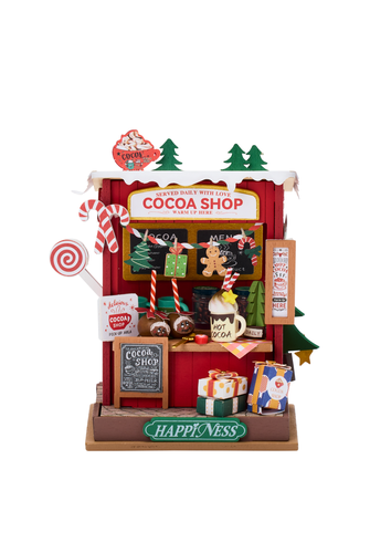 The holidays are warm and sweet at the Cocoa Shop. This DIY miniature house from Rolife is a beautiful and intricate diorama of a hot cocoa stand eager to drive away the chill of a snowy day. Drive out the winter chill with a steaming mug of the Cocoa Shop's traditional hot chocolate. Their recipe includes rich chocolate, fluffy marshmallows, a hint of cinnamon, plus the optional peppermint candy cane. Pair it with other sweets they offer like candied apples, gingerbread, or chocolate chip cookies. Don't skip this creamy, heartwarming Christmas staple that's as familiar as a loved one's hug. Other than the coveted beverage, the stall itself is a hit among kids and kits at heart with its vibrant red color and Christmas ornaments. The wooden counter displays an array of yummy treats and daily specials that are listed on the chalkboard. There are specially packaged blends for those who want to share the drink with others, and coffee is on the menu as well!