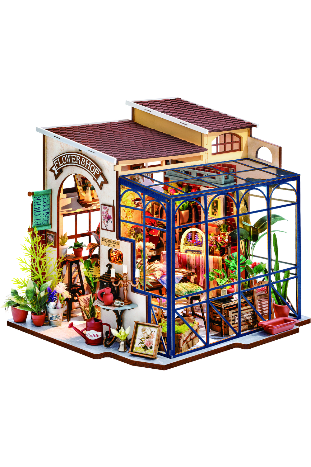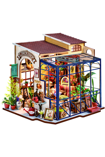 Step into Emily's blooming world of creativity and design. It's an enchanting display that features a charming assortment of miniature potted plants, shelves, crates, furniture, tools, and elements meticulously crafted to capture the essence of a real flower shop. With vibrant greenery and delicate blossoms, this petal-perfect setup adds a touch of nature's beauty to any miniature scene, making it perfect for hobbyists and collectors who love elaborate, lifelike designs. This endearing gardener's dream is a budding masterpiece waiting for your touch, so grab your tools and let your imagination flourish.