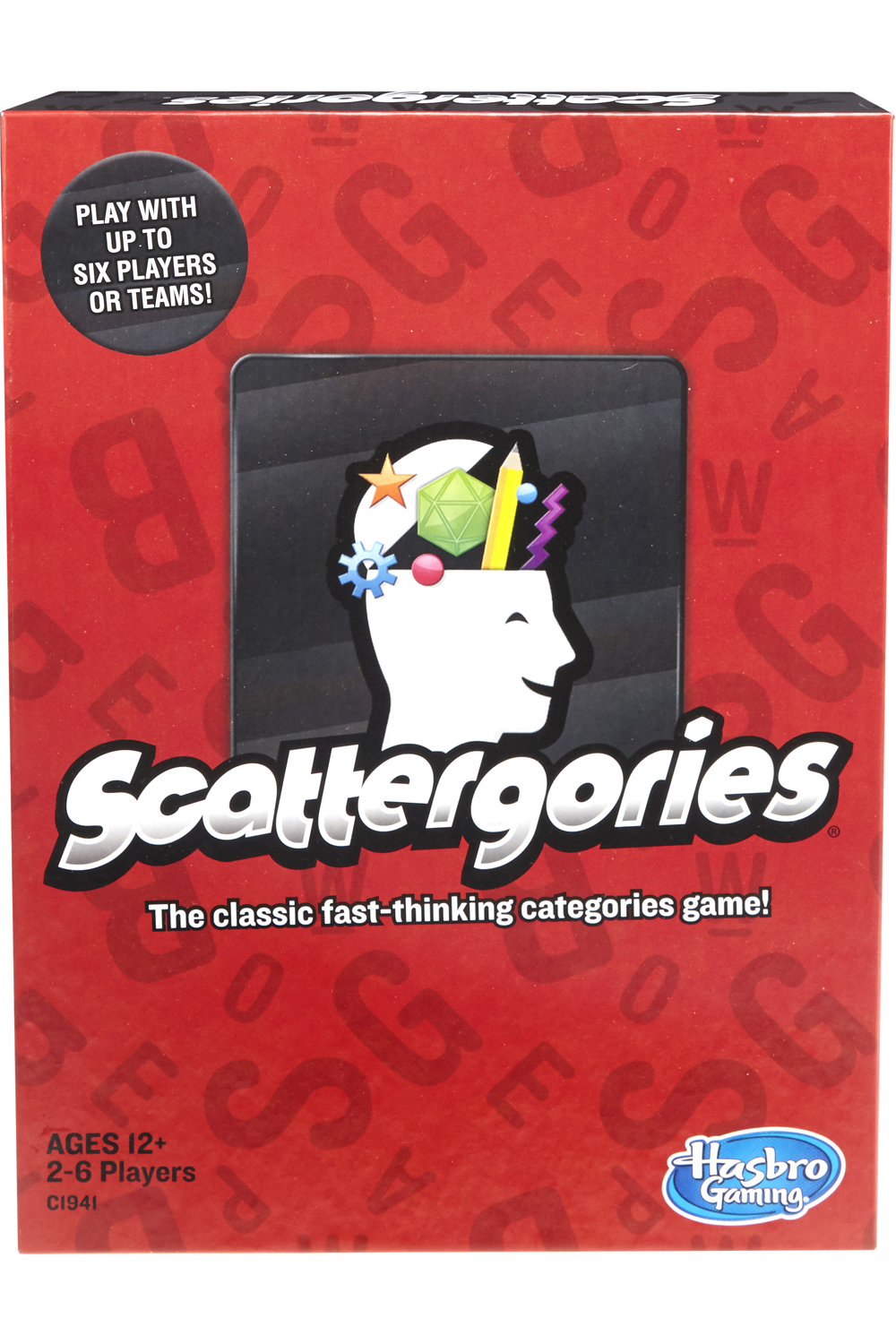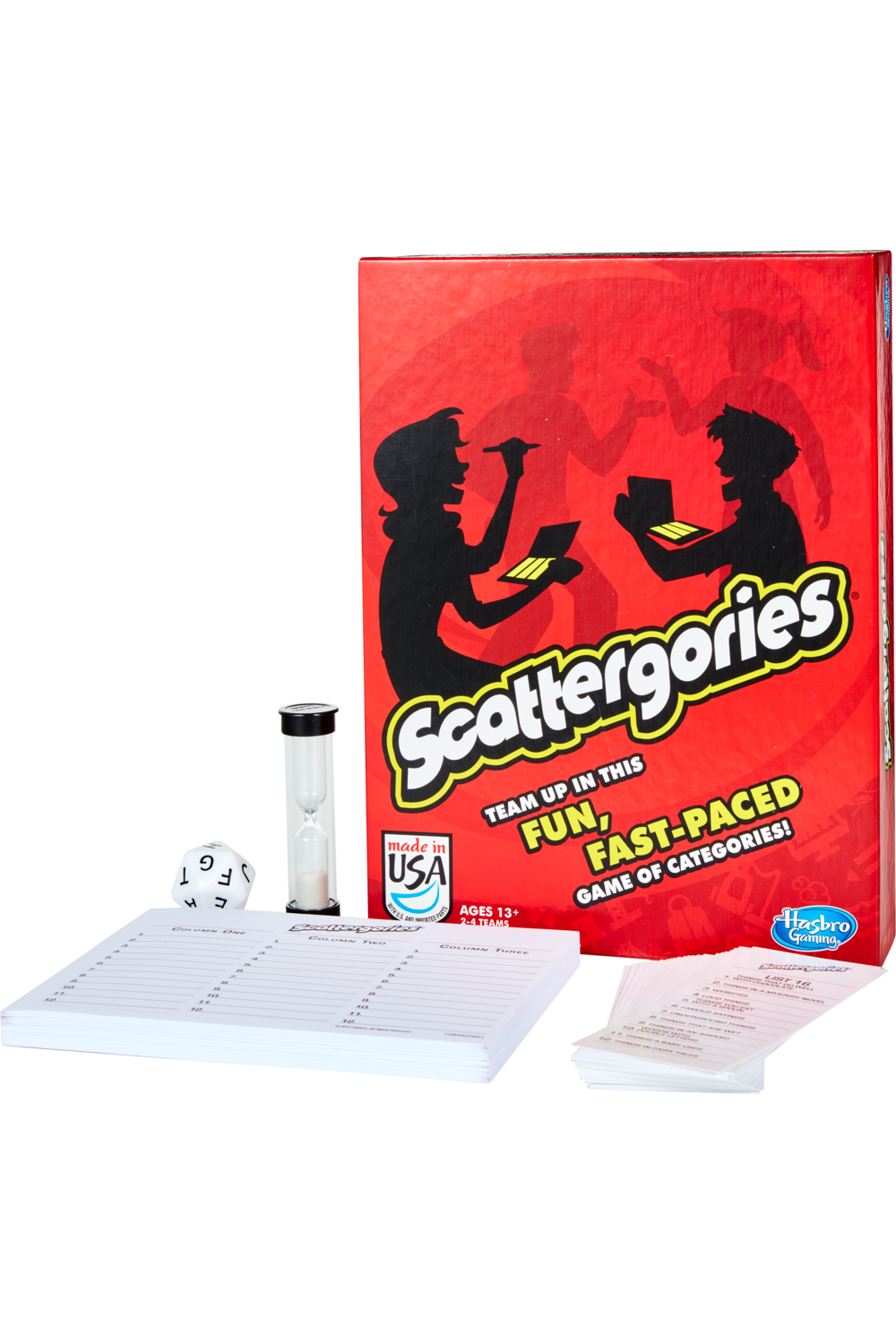 Do you have what it takes to be creative and think outside the box? The Scattergories game keeps you on your toes. Try to outwit other teams by coming up with unique answers in this fast-paced party game. Choose a category card, then roll the large 20-sided die and see which letter shows up. Race against the timer to think of answers for each category that begin with the letter on the die. Here's where it pays to be unique! You can only score points if your answers are different from the other teams'. The Scattergories game has over 3,500 possible category combinations, assuring you hours of fun.