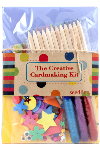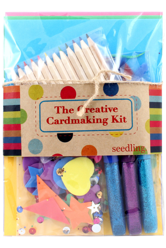 - Contents: 6 coloured cards, 6 plain envelopes, glitter glue pens, feathers, craft shapes, coloured pencils