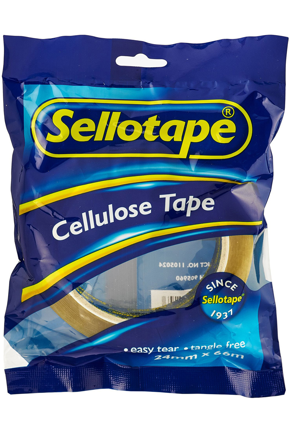 This clear Sellotape refill is a cellulose film coated with a moderately aggressive rubber adhesive. It is suitable for general office, shop, industrial and household use supporting a wide range of light duty applications, particularly where film clarity and absence of static are required. For example; closing or sealing of small parcels, cartons, bags and many other types of packages, building, repairing and temporary holding in industry, office or home. The clear celluse film will not obscure graphics and tape is static free so it will not curl or twist in use. As cellulose is made from wood fibre it is an environmentally friendlier product than plastic film-based tapes and is biodegradable. Tape measures 24mm x 66m. Please note, damp or humid atmospheric conditions can affect the performance of cellulose tapes.