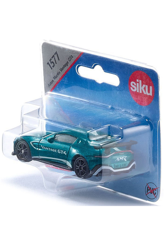 The name: A legend. The model: Racing Deluxe. We're talking here about nothing less than the Aston Martin Vantage GT4. With improved dynamics and increased performance thanks to the new 4.7 litre V8 engine, this imposing racing car has no trouble in leaving its rivals and companions far behind on the race track. The striking Long Beach Blue Metallic paintwork, with the elaborate white print on the sides, bonnet, and rear also make it a real gem visually, with a big "I want" factor. The clear glazing reveals a view into the (plastic) vehicle interior, which is true-to-detail in small scale and in restrained black. The headlights and rear lamps are reproduced as a true-to-original print. Together with sporting black rims with rubberised tread, the striking, giant rear spoiler rounds out the unique look of the Aston Martin Lagonda (AML) Racing Series. Incidentally, the body of this racing dream is made of robust metal, and so the Aston Martin Vantage GT4 can withstand potential crashes or rollovers occurring during the playroom Grand Prix.