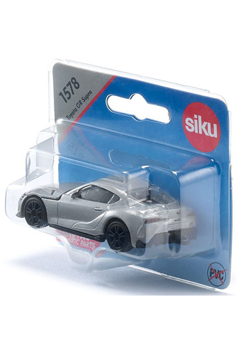 Nothing is impossible: Toyota. The Japanese automotive manufacturer is still 100% true to the promise which was once made in its publicity: With the GR Supra, Toyota demonstrates that it can also develop completely modern and impressive sports cars having absolute cult flair. The GR sports car's style is an immediate winner, thanks to its cool look: Toyota is masterly in combining a sophisticated, dark carbon-silver tone with jet-black rims. What the look hints at can actually be admired in miniature under the model's bonnet: Because this is where the detailed replicate of the imposing 3.0 litre engine is concealed. Not only does it provide extremely quiet running, but above all a direct acceleration from 0 to 100 km/h in 4.3 seconds. The engine, like the chassis and the interior, is made from robust black plastic. In contrast, the body is made from metal and, as always with siku, the headlights and rear lamps can be recognised from their true-to-original print. And typical siku too: The sports rims with rubberised tread for perfect grip on all roads and race tracks in playrooms throughout the world.