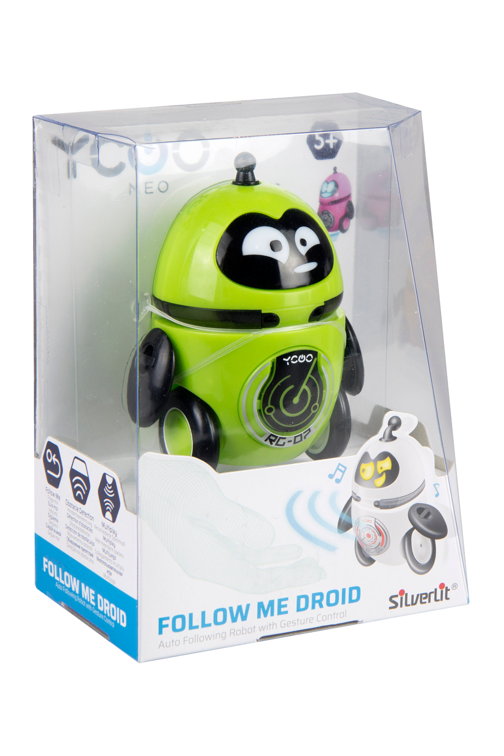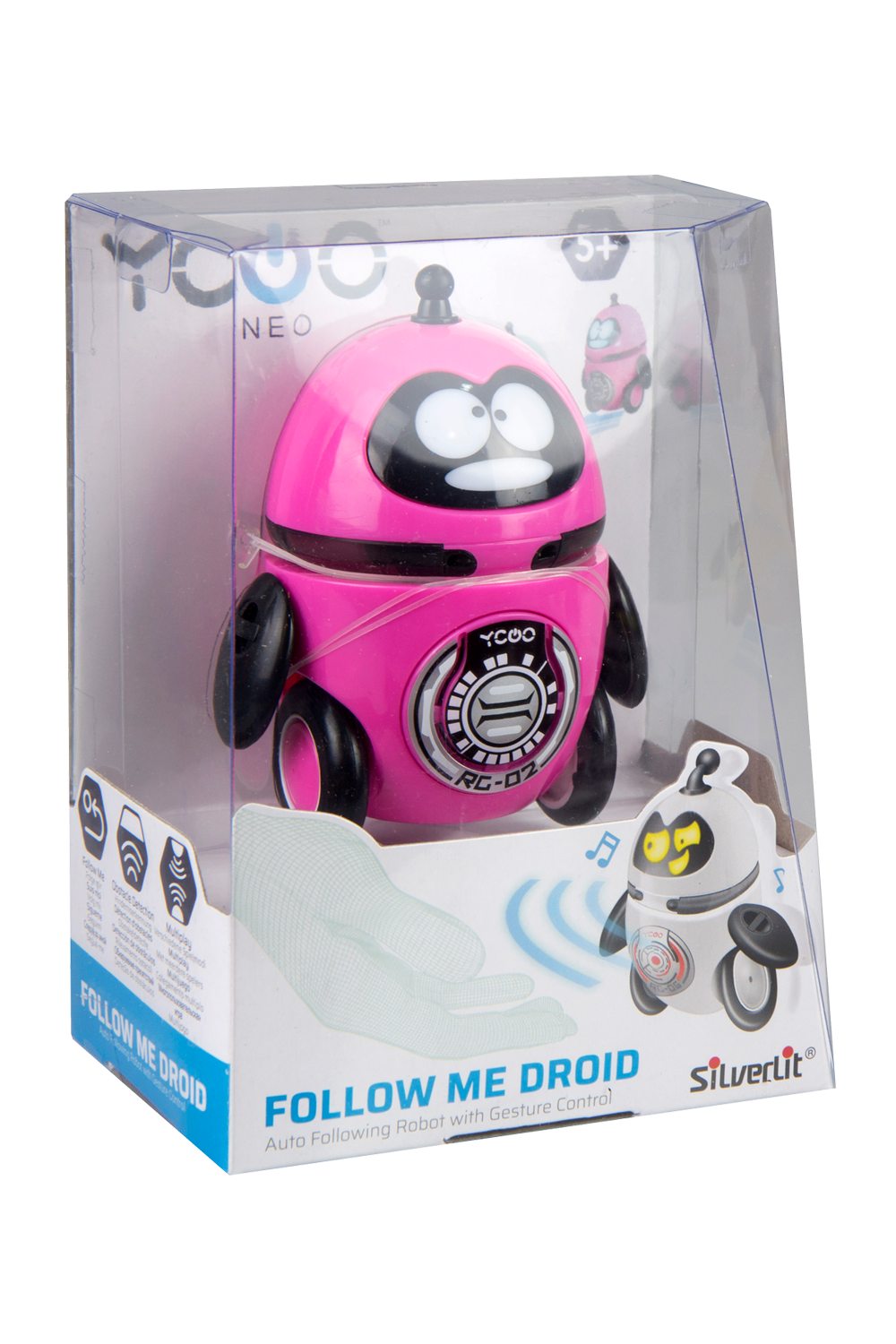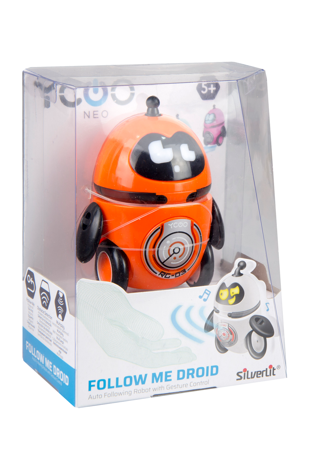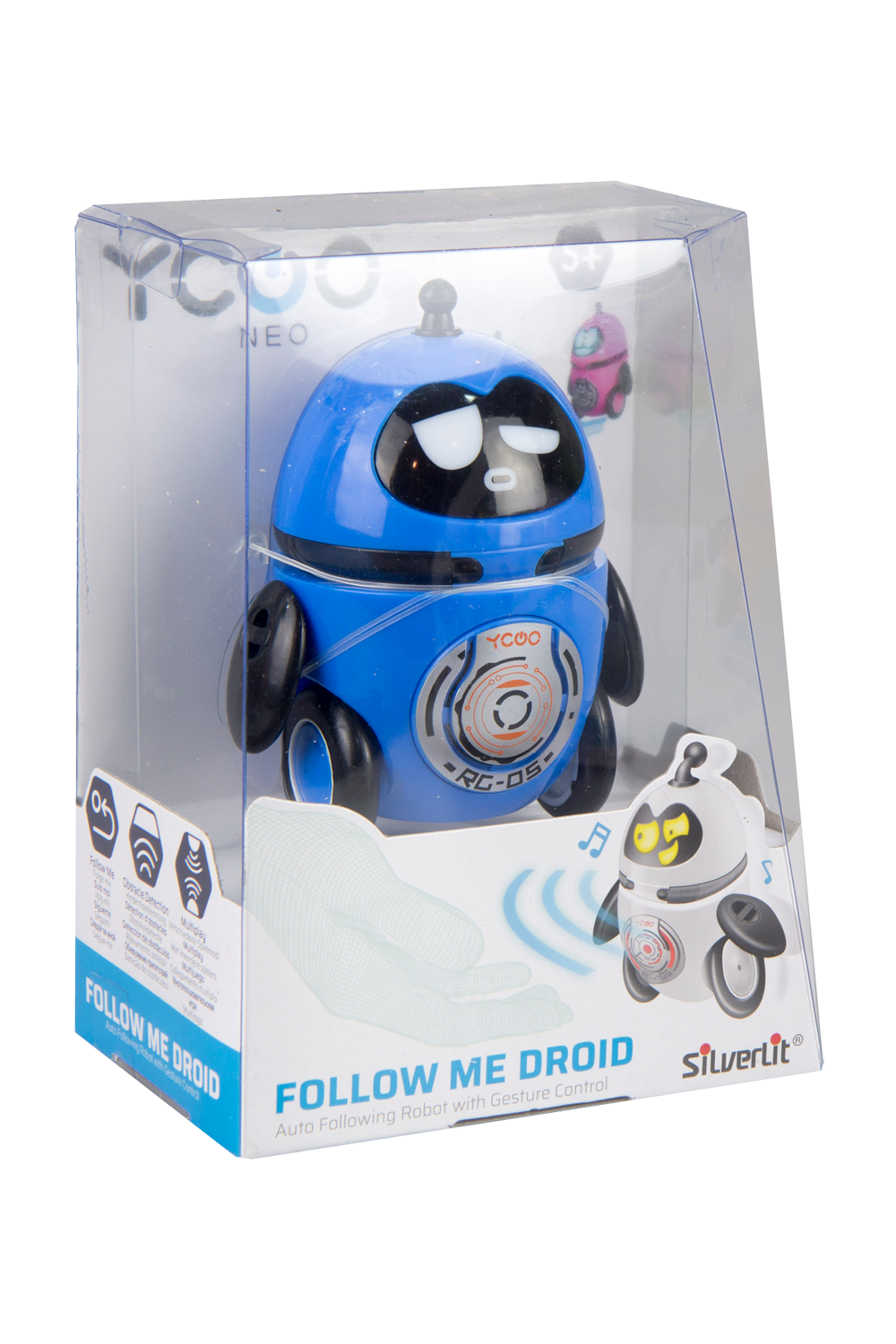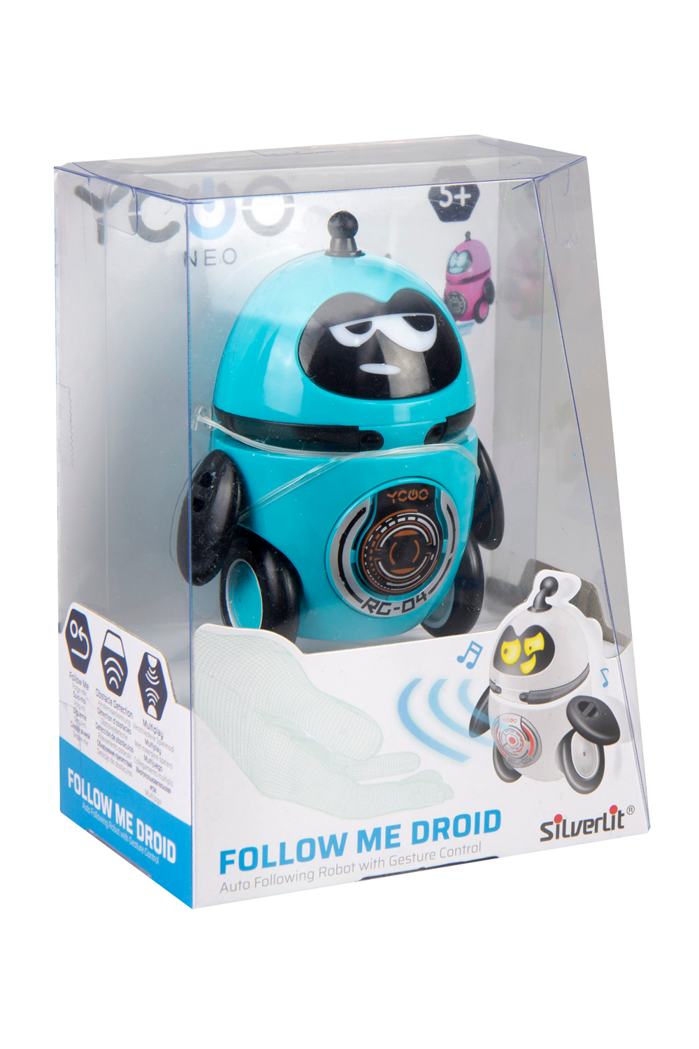 Introducing Follow Me Droid, your new robotic pal who will follow you wherever you go. Use the integrated gesture control to make your droid go in any direction you want. The built-in obstacle detection means that your droid is able to keep going, even if you try to steer it off course. Get your Follow me Droids together for a dance party! Watch them chat and run circles around each other with their auto follow feature. When 2 or more droids are near each other they will dance and talk with each other.