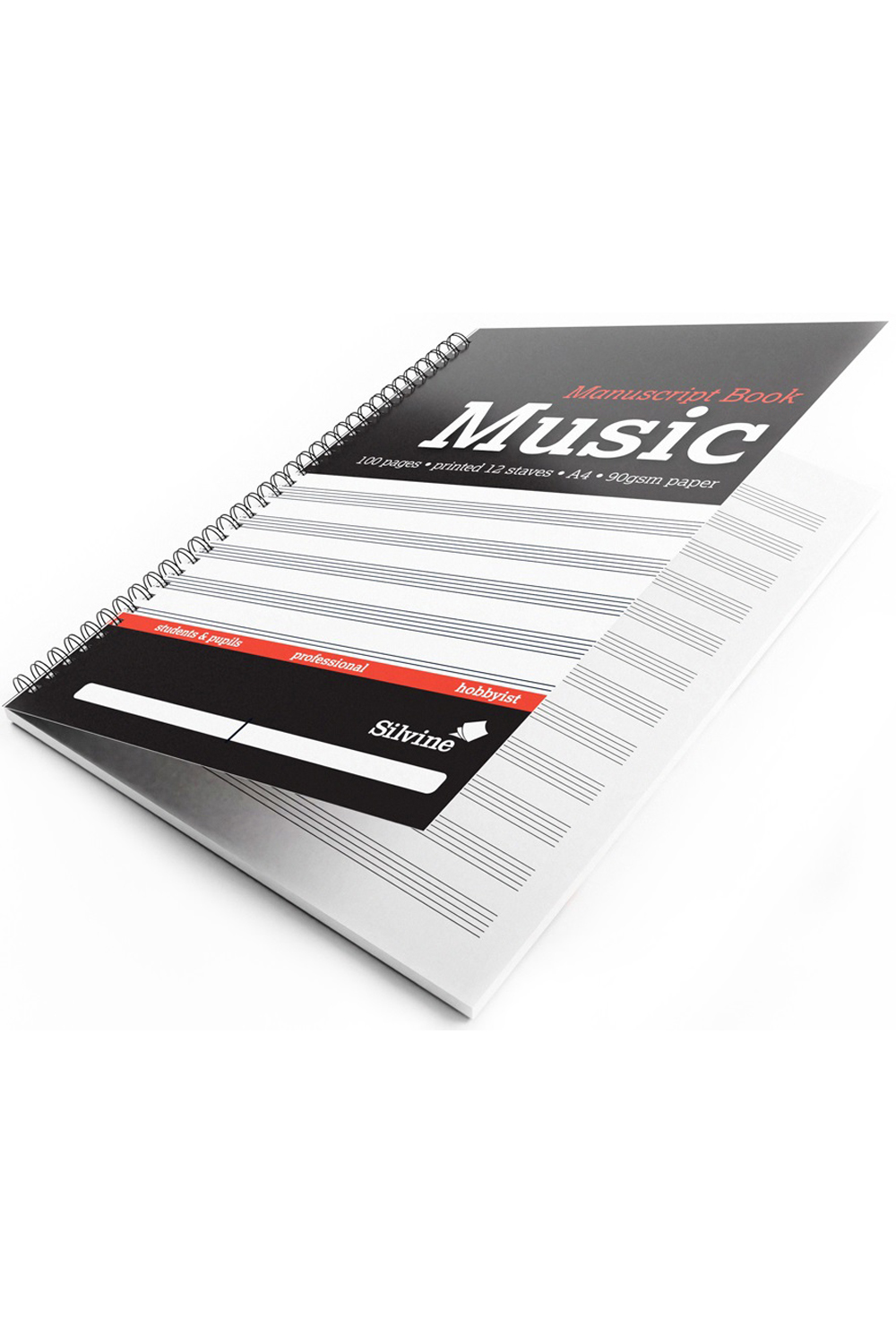 The Silvine Music Manuscript Book features a soft cover, 50 leaves (100 pages), each printed with 12 blank staves so you can get more music out of every sheet. The book is wirebound so you can fold it all the way back on itself and it will still remain flat. Ideal for budding musicians who want to try their hand at writing their music.