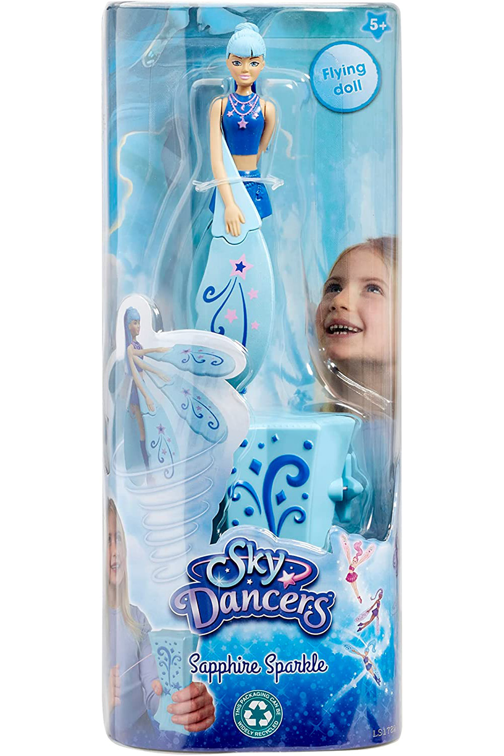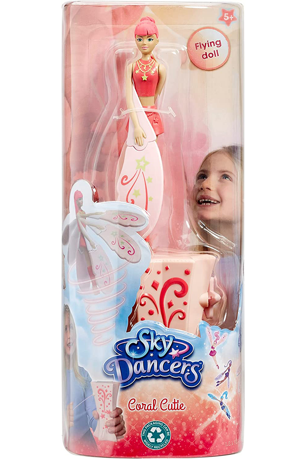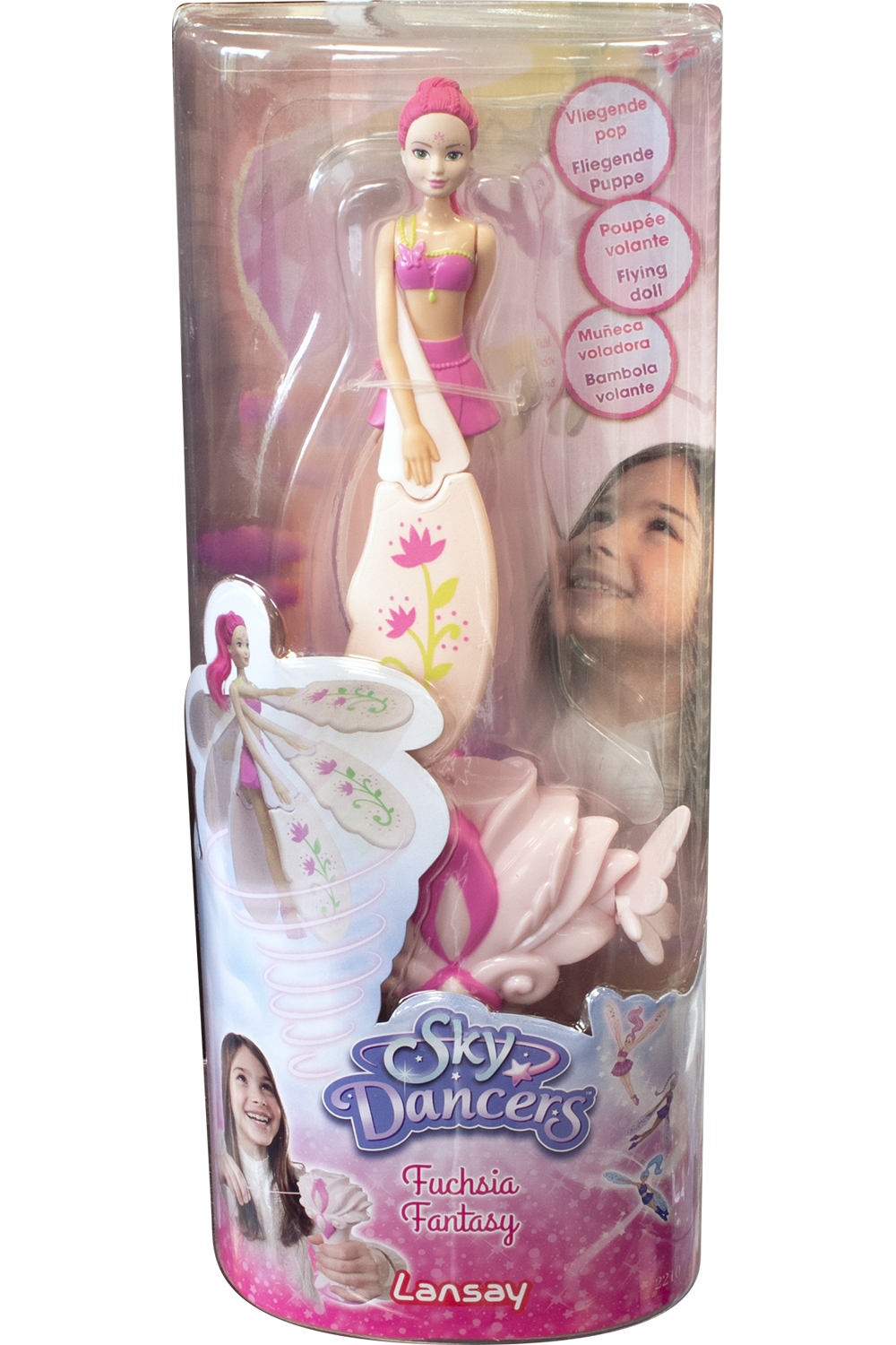 Watch the skyline, it's magic time! A flutter, a flurry, a sparkle of light, watch as the beautiful Sky Dancers are taking flight. These Sky Dancers can dance, glide and fly through the sky. With their sweet power, they can transform any cloud into cotton candy! Pull the string on the decorated launch base and watch as the beautiful Sky Dancers fly into the air again and again.