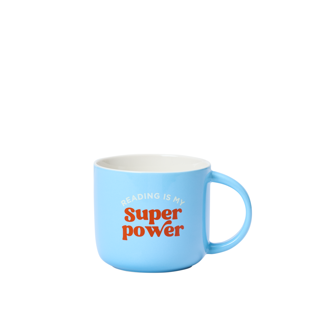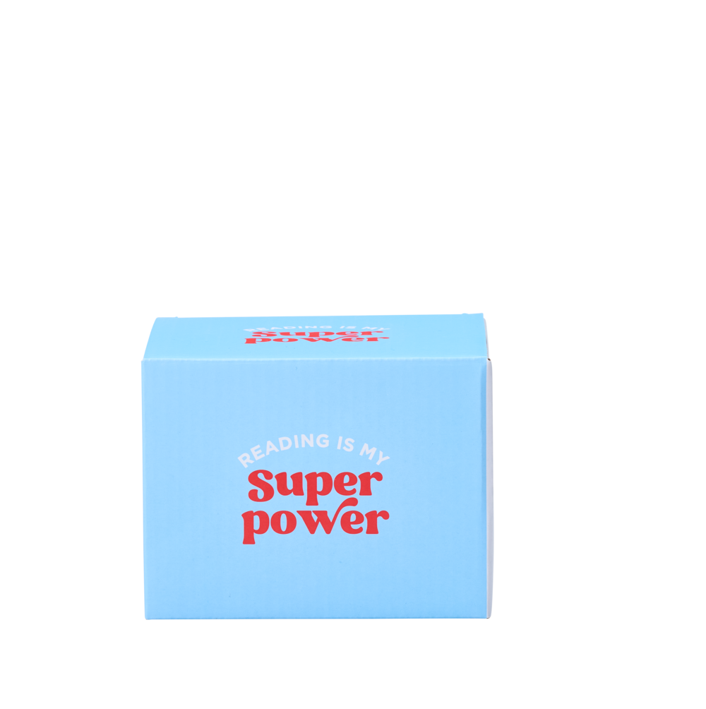 Enjoy a comforting cup of your favourite hot drink in this delightful mug featuring the words "reading is my super power" on a blue background. Mug is dishwasher and microwave safe and comes in a matching box for easy gifting or storage.