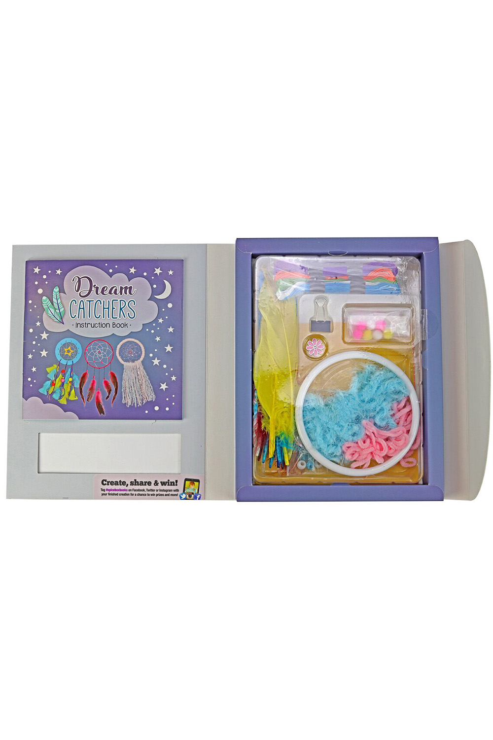 Snag some sweet dreams with your own handmade dreamcatcher! Create a beautiful dreamcatcher to hang above your bed so that only good dreams can find their way to you as you sleep! Step-by-step instructions will show you how to use the fun craft supplies in your kit to make your own colorful, personalised dreamcatcher!