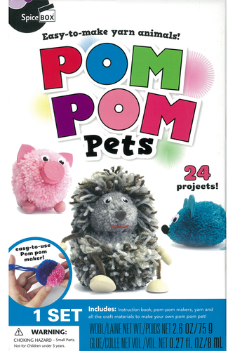 Make your own menagerie of adorable animals using the instructions and great craft supplies included in this kit! From dinosaurs to prickly hedgehogs to smiling whales and cute little pigs, you'll want to make all 24 projects! Includes: instruction book, set of 3 various pom-pom makers in various sizes, 4 EVA foam squares, 5 skeins of craft yarn in various colours, 3 felt squares, 12 googly eyes in various sizes, 12 pipe cleaners in assorted colours, 10 craft pom-poms in assorted sizes and colours, 8mL of white glue, and 4 acrylic beads.