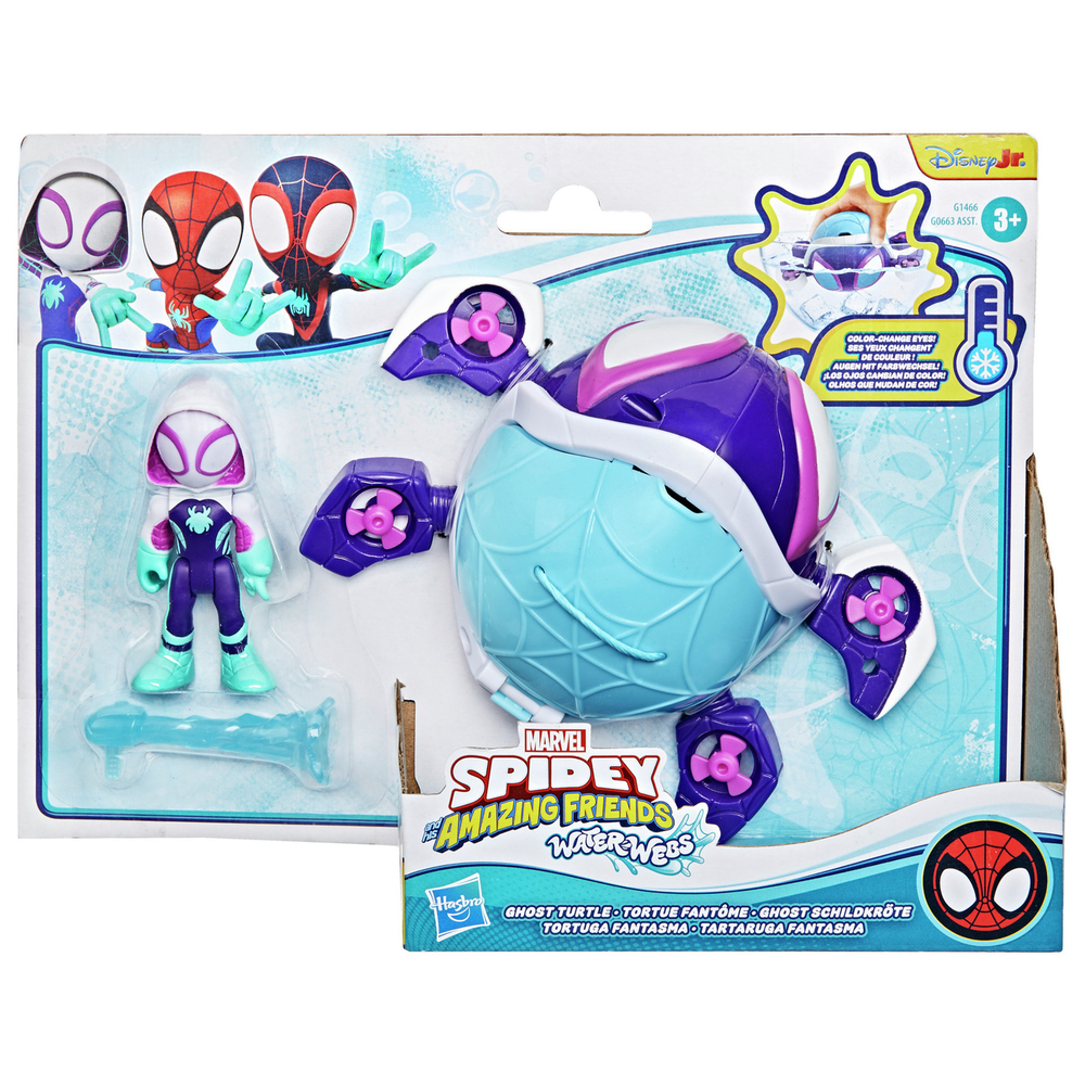 Imagine splashing into action and adventure with the Marvel Spidey and his Amazing Friends WaterWebs toy vehicle and figure sets! These girls & boys 3-inch (7.6 cm) action figure & vehicle sets feature fun, stylized vehicle toys that come with a poseable figure. Design and deco inspired by the Disney Jr. series Spidey and his Amazing Friends, including updated Water-Webs Spider-Man suit deco. Figures also come with detachable web accessories. Encourage big, imaginative adventure play for kids with more Spidey and his Amazing Friends toys from Hasbro, including water toys and action figure vehicles & playsets!