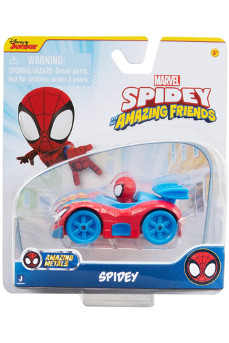 Introducing the Spidey and His Amazing Friends Amazing Metals Die-Cast Vehicles featuring Spidey and his friends from the Disney Junior TV series. Made from metal die-cast and equipped with working wheels, these 3-inch vehicles are ready for adventure. Give the heroes a push forward or backward and help them zoom off to save the day. Join Spidey and his amazing friends on their heroic missions with the Amazing Metals Vehicles and experience thrilling races to victory.