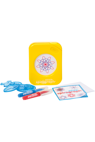 Travel Spirograph is the classic way to create countless amazing designs on the go! This portable Spirograph studio has a built-in design ring, work surface and storage compartment for holding your wheels, pens, paper, design guide and finished artwork. Simply select your wheel of choice and your colour of pen, and get to work making endless, amazing designs no matter where you are!