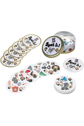 The smash-hit game of speedy observation gets a magical twist - Spot It! Harry Potter. Perfect for fans of the wizarding world the game features stylised imagery of Harry Potter, Hermione Granger and Ron Weasley, Hedwig, wands, creatures, Hogwarts house crests and more. In this fast-paced game, spot the match first and test your reflexes. There are 55 cards, 8 iconic Harry Potter character symbols and always only one shared symbol between any two cards! Cards come in a keep safe Spot It! Harry Potter tin.