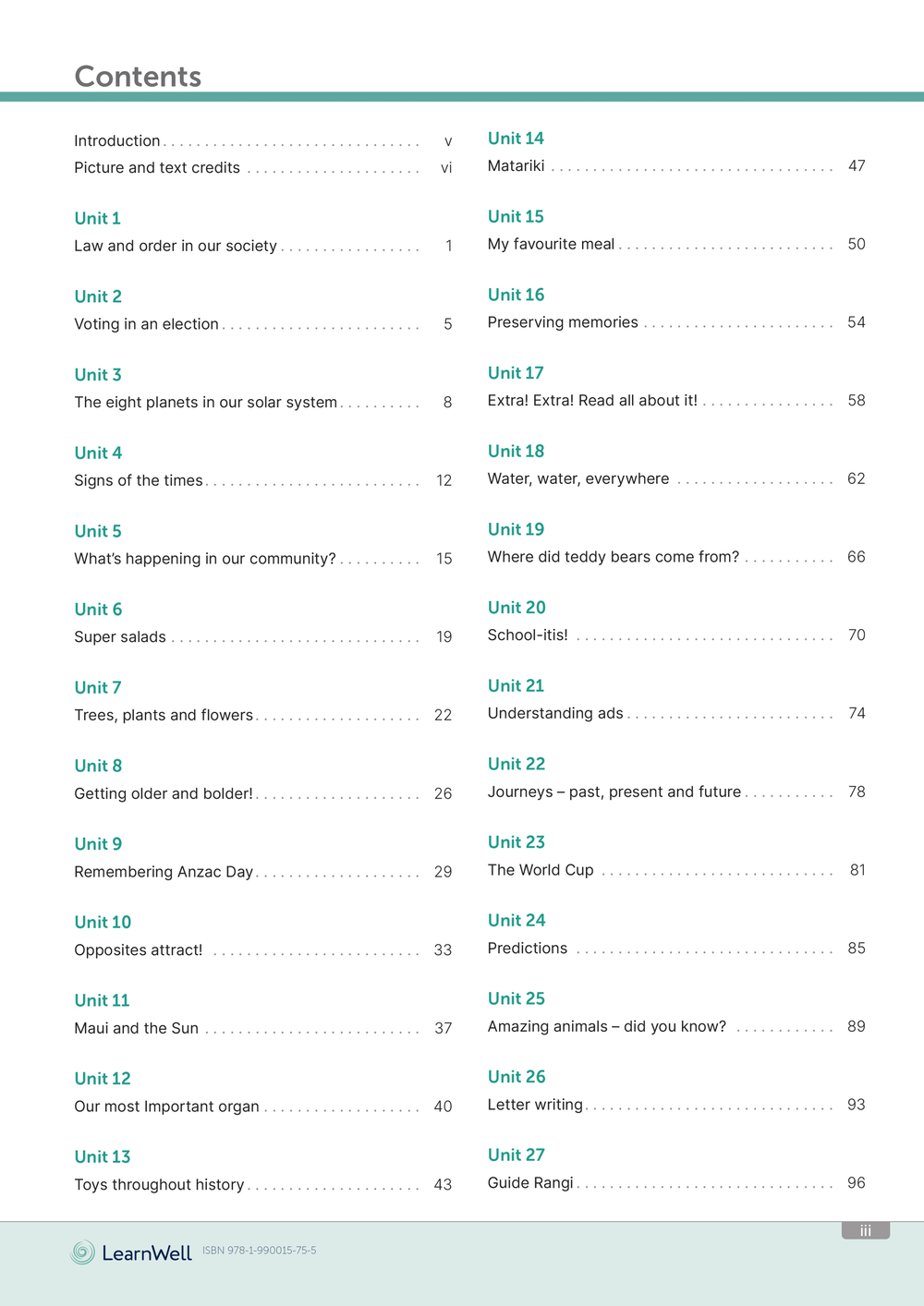 Year 5 Homework Workbook introduces material from Level Three of The New Zealand Curriculum. It is set out in an attractive, write-on format, to engage young learners (typically, 9-year-old and 10-year-old students). This is the fifth of the eight Start Right Homework Workbooks that together cover aspects of Levels One, Two, Three and Four of The New Zealand Curriculum. The material in the series has been written and checked by experienced classroom teachers to meet students' needs and abilities. Year 5 Homework Workbook has the following features. It provides comprehensive coverage of the learning areas of Mathematics and Statistics, and English. Extensive use is made of New Zealand examples to illustrate concepts. Activities are provided for the following learning areas: - Science - Social Studies - Technology - Health - Visual Arts. It provides opportunities to practise spelling and handwriting. Activities to help improve thinking skills are included. Answers are provided as a guide to student responses and to aid understanding.