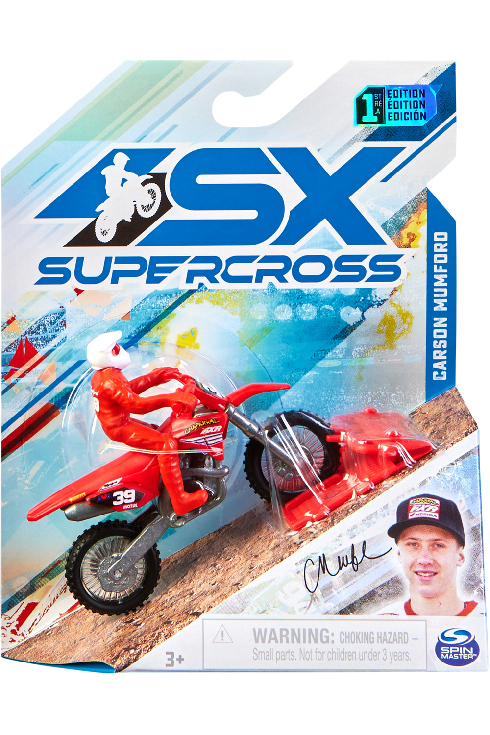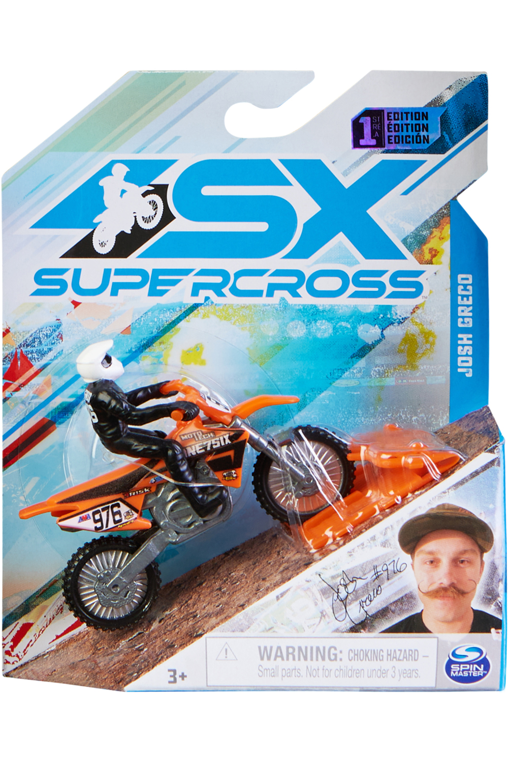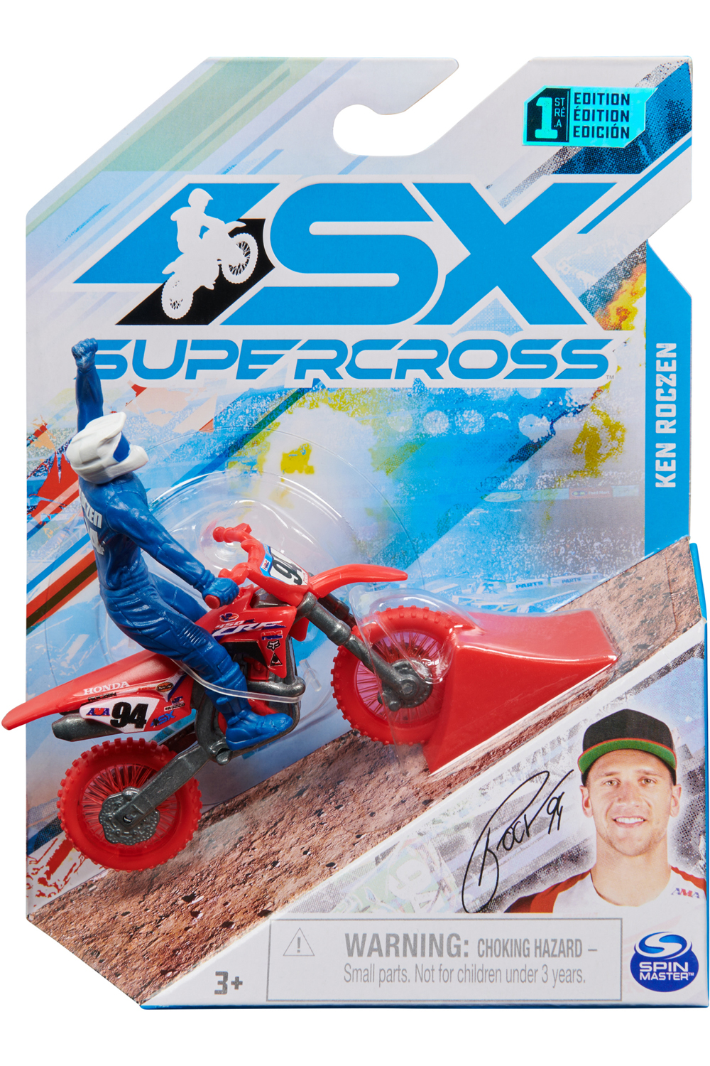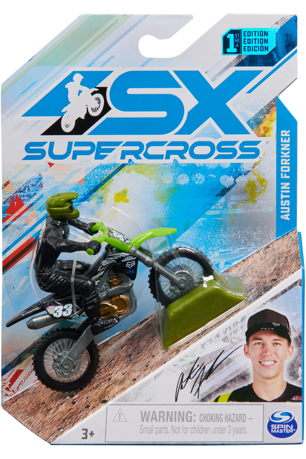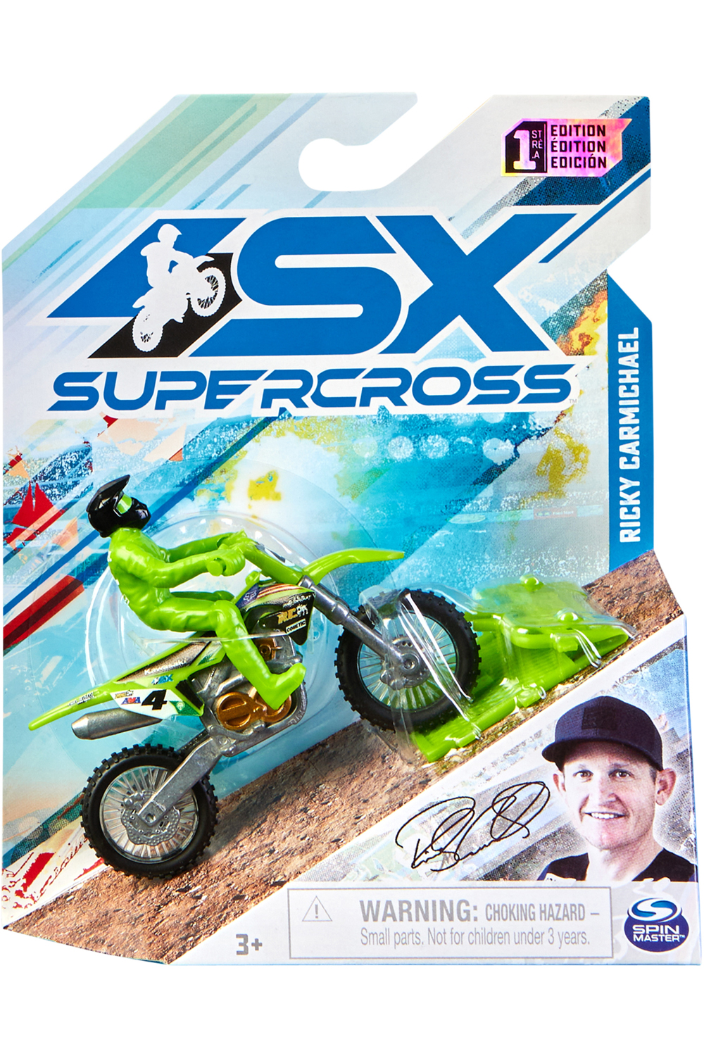 - Contents: 1 Supercross 1:24 Scale Die-Cast Motorcycle (with Rider Attached), 1 Race Ring, 1 Collector Poster