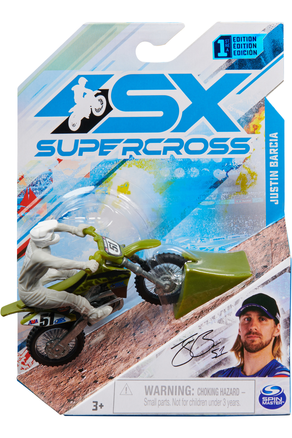 Bring the action of Supercross home with the official 1:24 scale die-cast motorcycles and riders! These authentic racing bikes include riders attached onto their bikes and put the Supercross action in your hands. Roll your bike by hand, pop into wheelies, pull off epic tail whips, jumps, turns and more, just like you've seen in the live events! Featuring realistic details, graphics and metal die-cast motors and forks, the 1:24 scale Supercross dirt bikes and riders look just like the real thing - only fun size! Collect all of your favourite pro riders and their bikes, including Justin Barcia, Ricky Carmichael, Aaron Plessinger and more (each sold separately) and turn your world into a Supercross stadium! Recreate the excitement of Supercross right at home with the official 1:24 scale motorcycles and riders!
