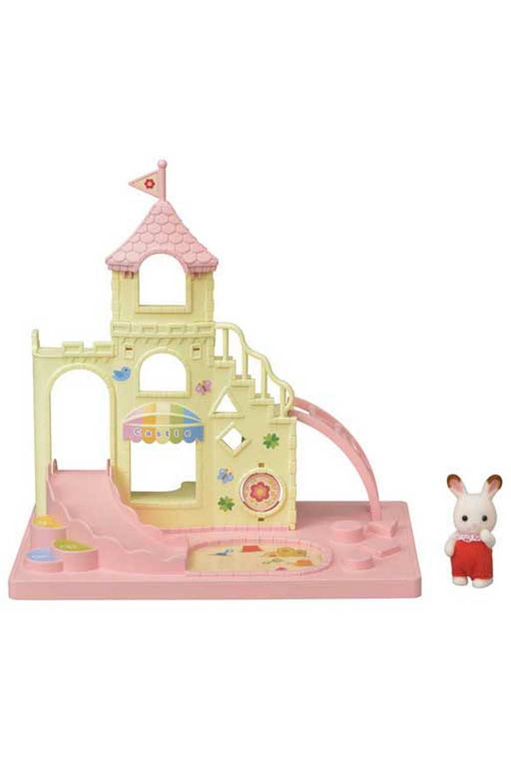 Baby Castle Playground is a castle-themed playground for babies, and includes one Chocolate Rabbit Baby figure. This playset is immediately ready for play as a stand-alone product. It includes a slide, ladder, sandbox, and other fun baby playthings.
