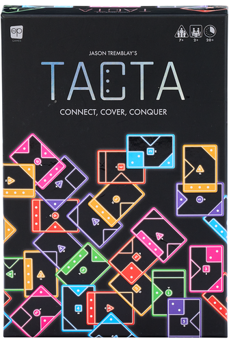 It's all connected! In this sneakily strategic card game, players flip, twist, and turn their cards to align and cover their opponents' shapes with matching squares, triangles, and rectangles. With an ever-growing board, up to 8 colours light up game night with TACTA. Analyze, strategize, and optimize because in TACTA, every card counts. An abstract card game system, similar to dominoes or poker cards. Tacta is a platform for countless games of skill, speed, and strategy, and tactics. Modular overlapping design allows you to customize your gameplay, play standardized games, or invent your own!