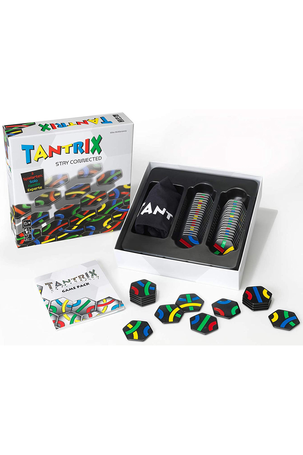 Tantrix has become world renown as an elegant and addictive strategy game for 2-4 players. This edition is called the "Game Box" and represents over 30 years of game development. The Game Box contains the award winning multi-player game and enough solitaire puzzles and activities to last a lifetime. Inside you'll find 56 unique black tiles, all numbered and colour-coded on the reverse, a practical shuffle bag and the updated 11th edition of the illustrated activity guide.
