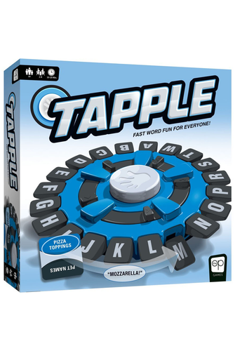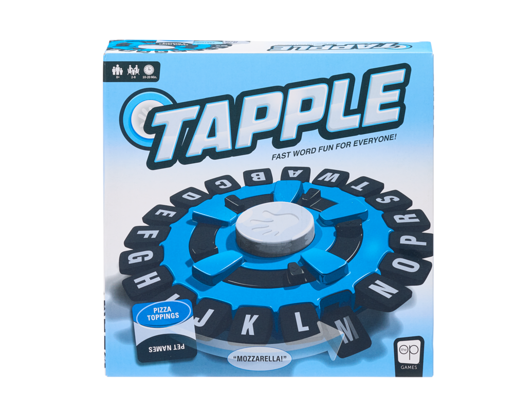Tapple is the award-winning, fast paced word game that gives players a rush of excitement as they race to beat the clock! Challenge friends and family to tap letters of the portable wheel as you come up with words for various categories before the ten-second timer runs out! Just say a word, beat the timer and win!