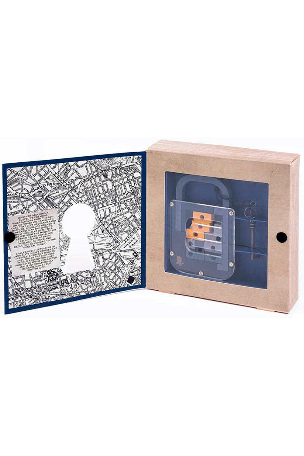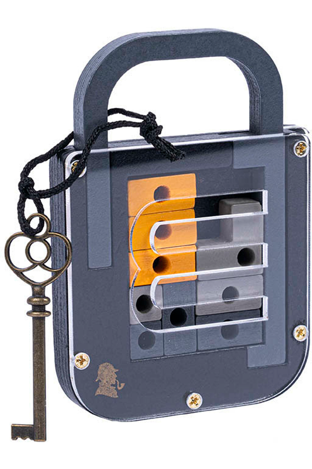 Using the key, move the blocks in the right sequence to release the lock and outsmart Moriarty's devious plan. Dr. Watson's sudden and inexplicable disappearance on his way home to Baker Street has quickly become front-page news. However, the nature of his predicament and whereabouts have remained shrouded in mystery. To all, that is, except Sherlock Holmes, whose nefarious arch nemesis, Moriarty, has challenged him to save his friend before time runs out. Upon solving Moriarty's elaborate trail of clues, Holmes finds himself deep in an underground prison where Watson is held captive. The clock is ticking, and Holmes must find a way to free the lock. But he must act swiftly before the exterior doors slam behind him, sealing their fate and leaving them both at Moriarty's mercy.