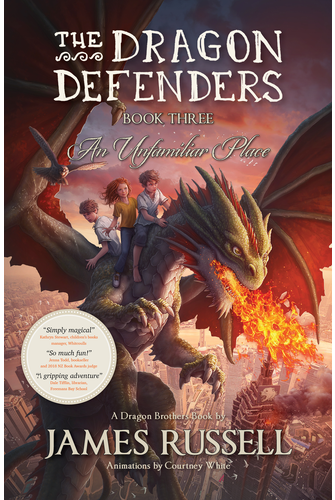 The Dragon Defenders - Book Three: An Unfamiliar Place continues the adventures of Paddy and Flynn, who are trying to stop evil boss The Pitbull from stealing the dragons from their paradise island. The Pitbull lures the boys away from the island and imprisons them along with his disobedient niece Briar. Escape looks virtually impossible!