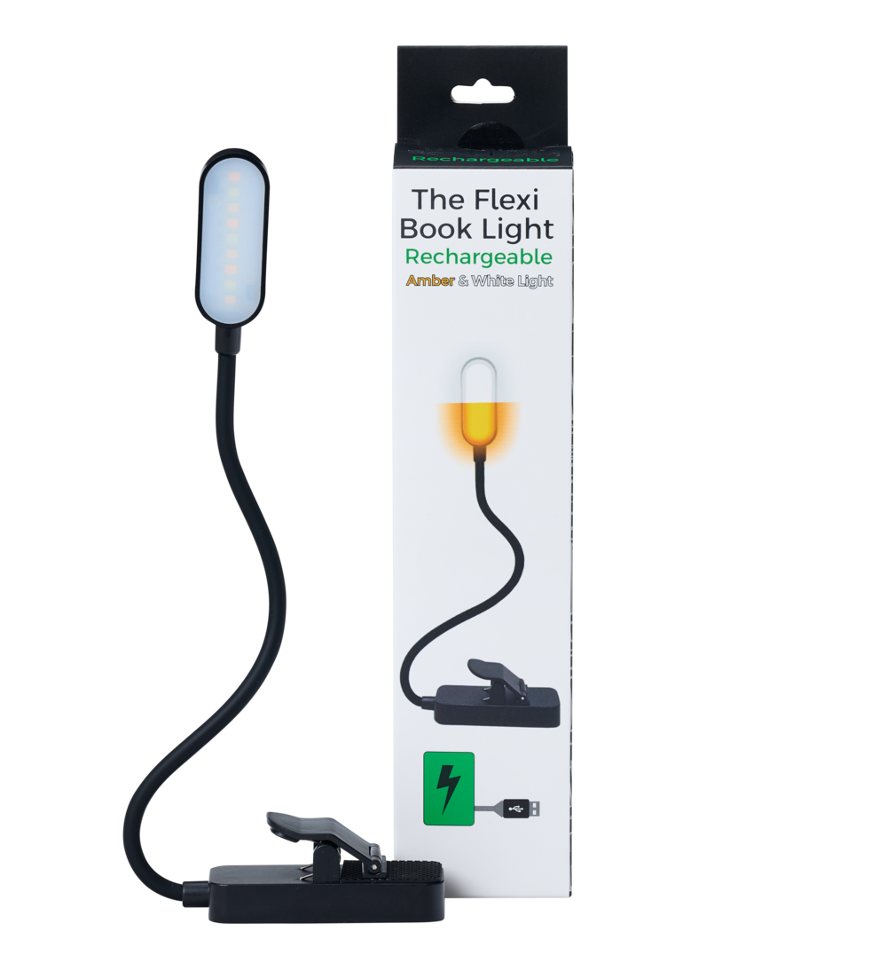 The Flexi Book Light is a rechargeable, gooseneck LED clip-on with amber and white light modes, 3 brightness settings, and up to 12 hours of glow - perfect for page-turners who read past bedtime (without getting caught).