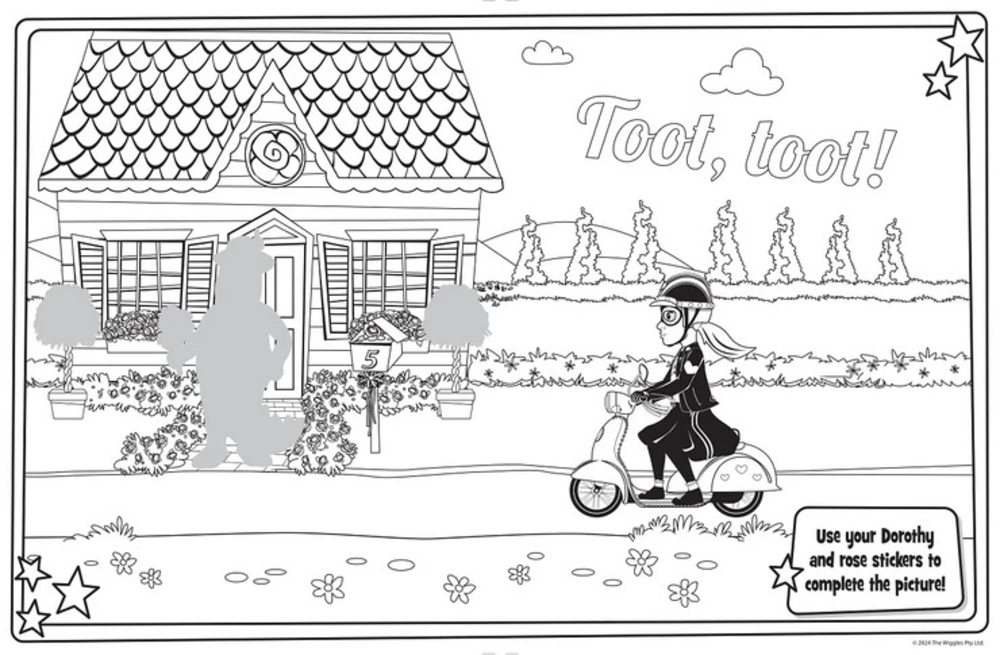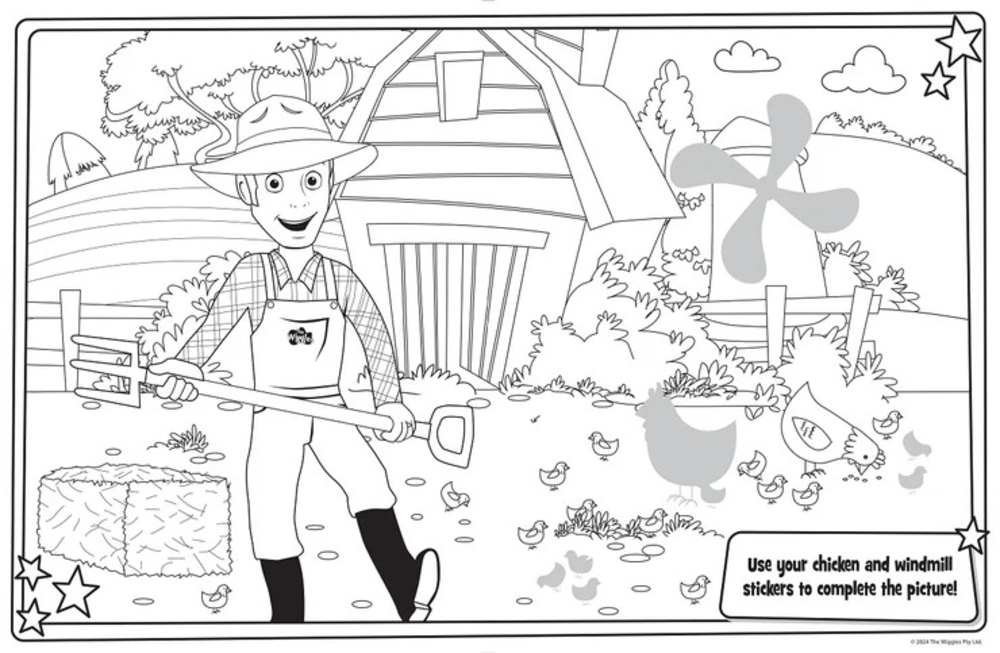 The Wiggles love going on adventures! Help make the places they visit vibrant and bright by colouring the pages inside and adding stickers to finish each scene!