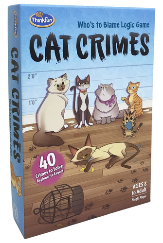 - Contents: game board, 6 Cat Tokens with stands, 6 Crime Tokens, 40 challenge cards with solutions