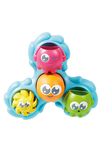 Bath time is about fun and learning with the spin & splash octopals! Just pop this bath toy on the wall above or just inside the bath tub. Octopal's suckers stick easily to tiles or any smooth surface. Kids love spinning the blue Ocean waves around and around! There are three of octopus babies and that's mum tale in the middle. She's a pouring cup which you can pop back in the middle once you're squeaky clean and done playing in the water. Use the cup to pour and then catch the water you splash over the three pals. They all react in different ways: spinning round and round, or rocking this way and that. The water flows like a fountain out of their legs or mouths! Once empty, these water toy pals are ready to start over again! No batteries required. Toomies love to have fun: it's at the heart of everything we do. We're full of little surprises that will delight you and your child because we know memories are formed when laughter is shared! Toomies. Hands on fun!