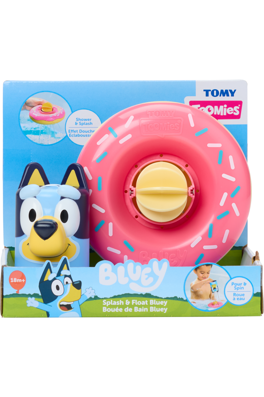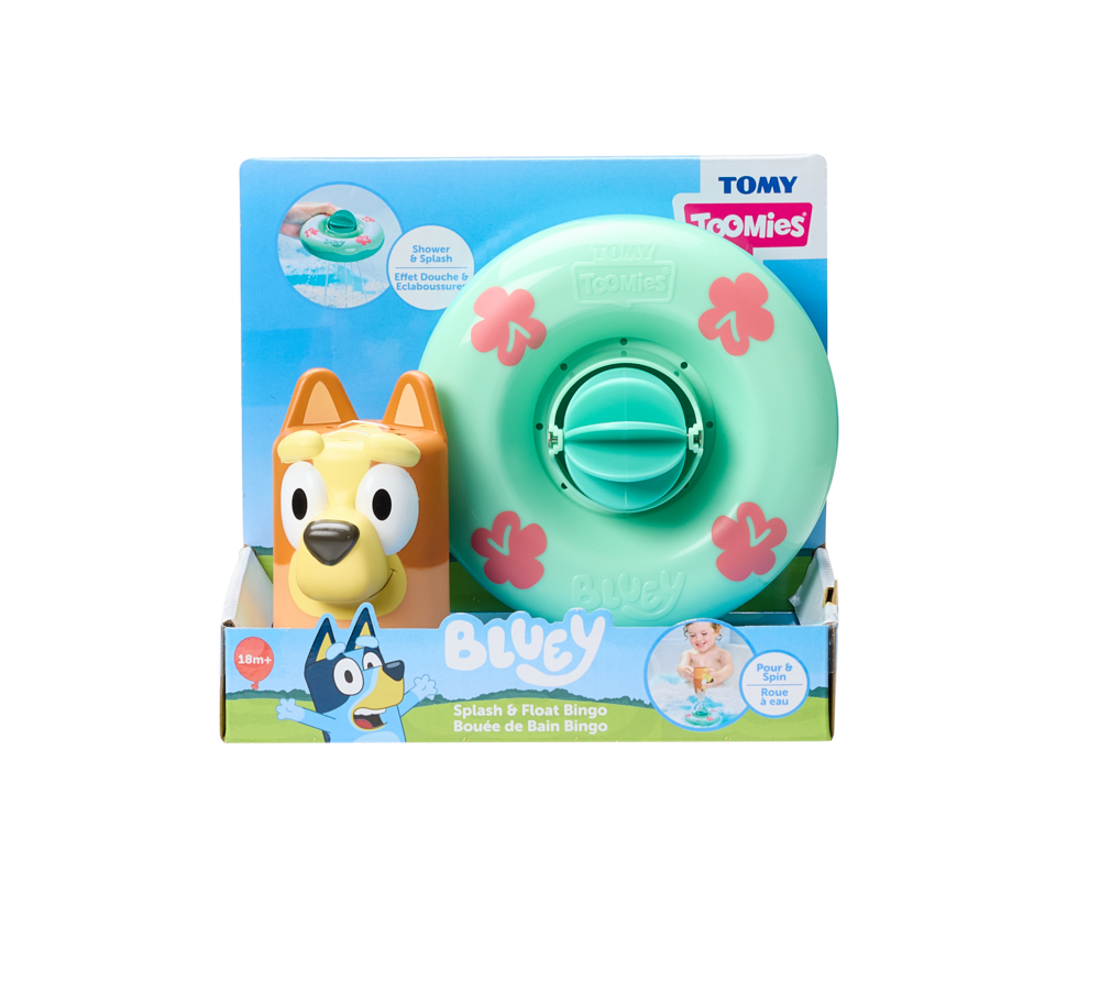 Get little ones excited for fun in the pool and bathtub with these cute Splash & Float Bingo and Bluey toys for toddlers ages 18 months and up. Bluey and Bingo bob around happily on their colourful pool floats but kids can lift them off the floats to reveal water wheels ready for spinning action! These smart water toys come in two parts: a floating ring with water wheel and a Bluey or Bingo pouring cup. And everything is the perfect size for little hands to hold! The easy-to-grip Bingo and Bluey cups have holes for sprinkling water. Toddlers can also use them to pour water onto the float's water wheel to set it merrily spinning. Kids can dunk the floats into the water for even more sprinkling fun with the shower holes underneath each of them. These versatile toys will grow with your child as they discover new ways to play, explore cause and effect with the water pourer and water wheel, develop fine motor skills, and build confidence around water. Bluey and Bingo are all about kid-powered fun; no batteries required here!